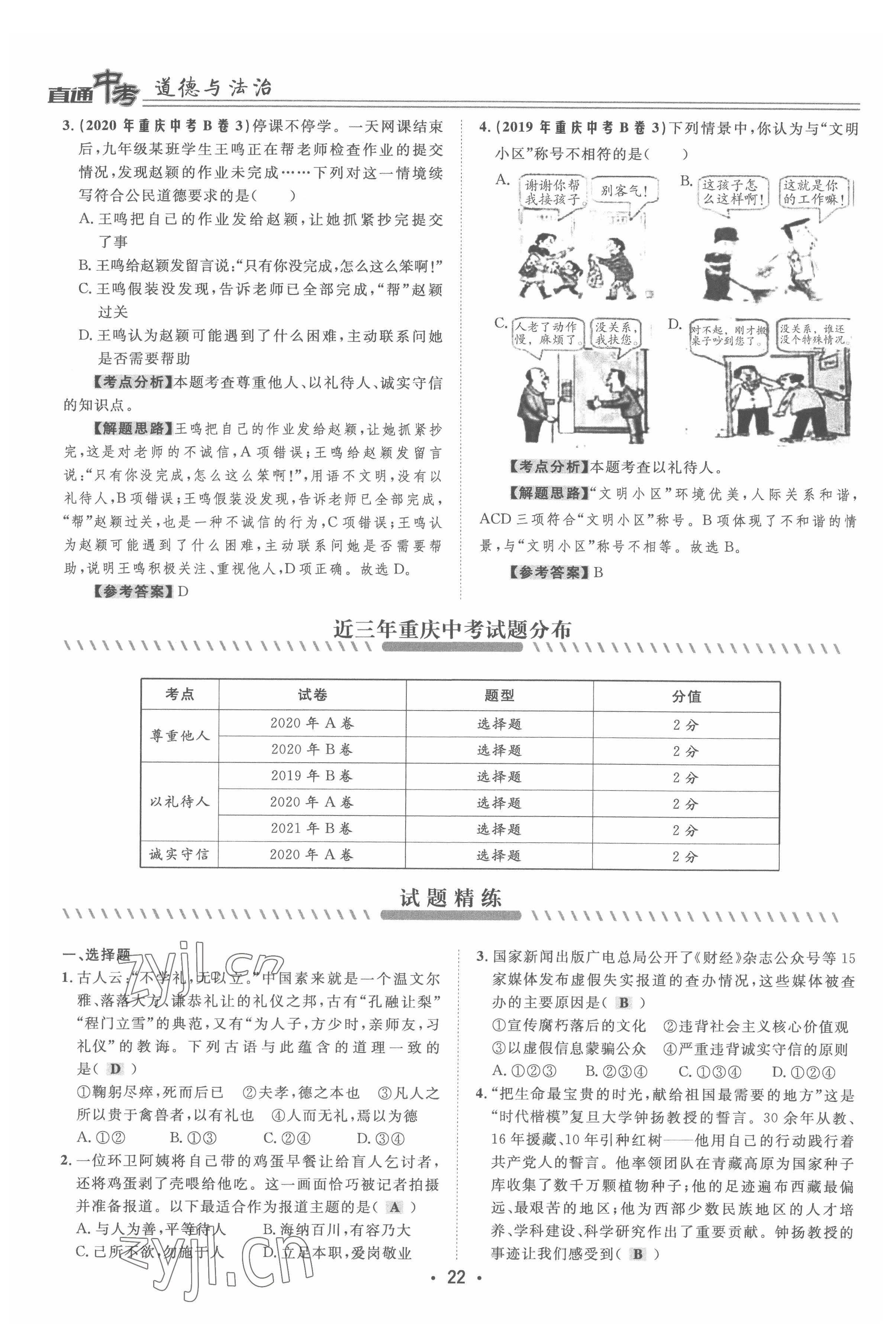 2022年直通中考道德与法治重庆专版