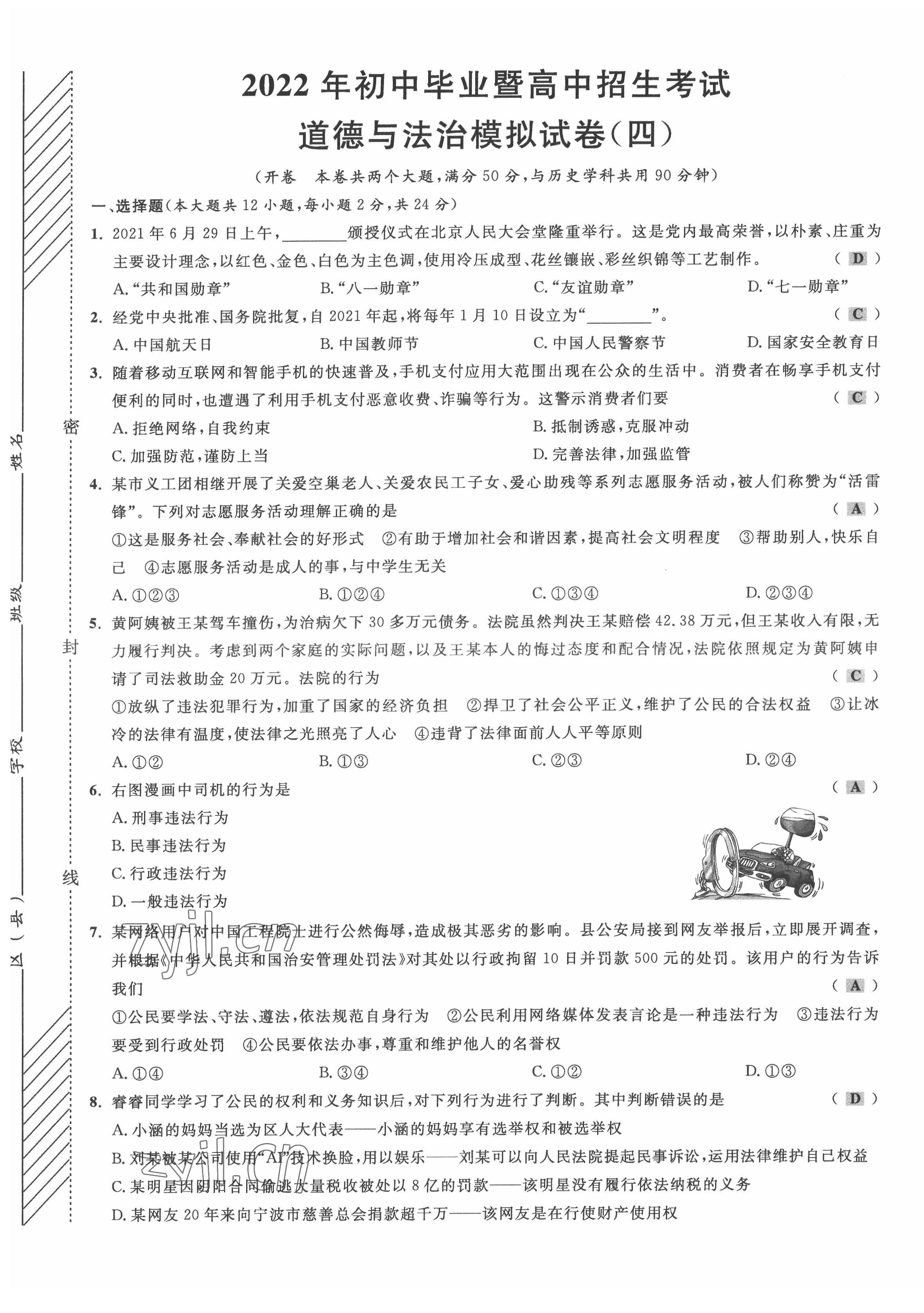 2022年直通中考道德与法治重庆专版