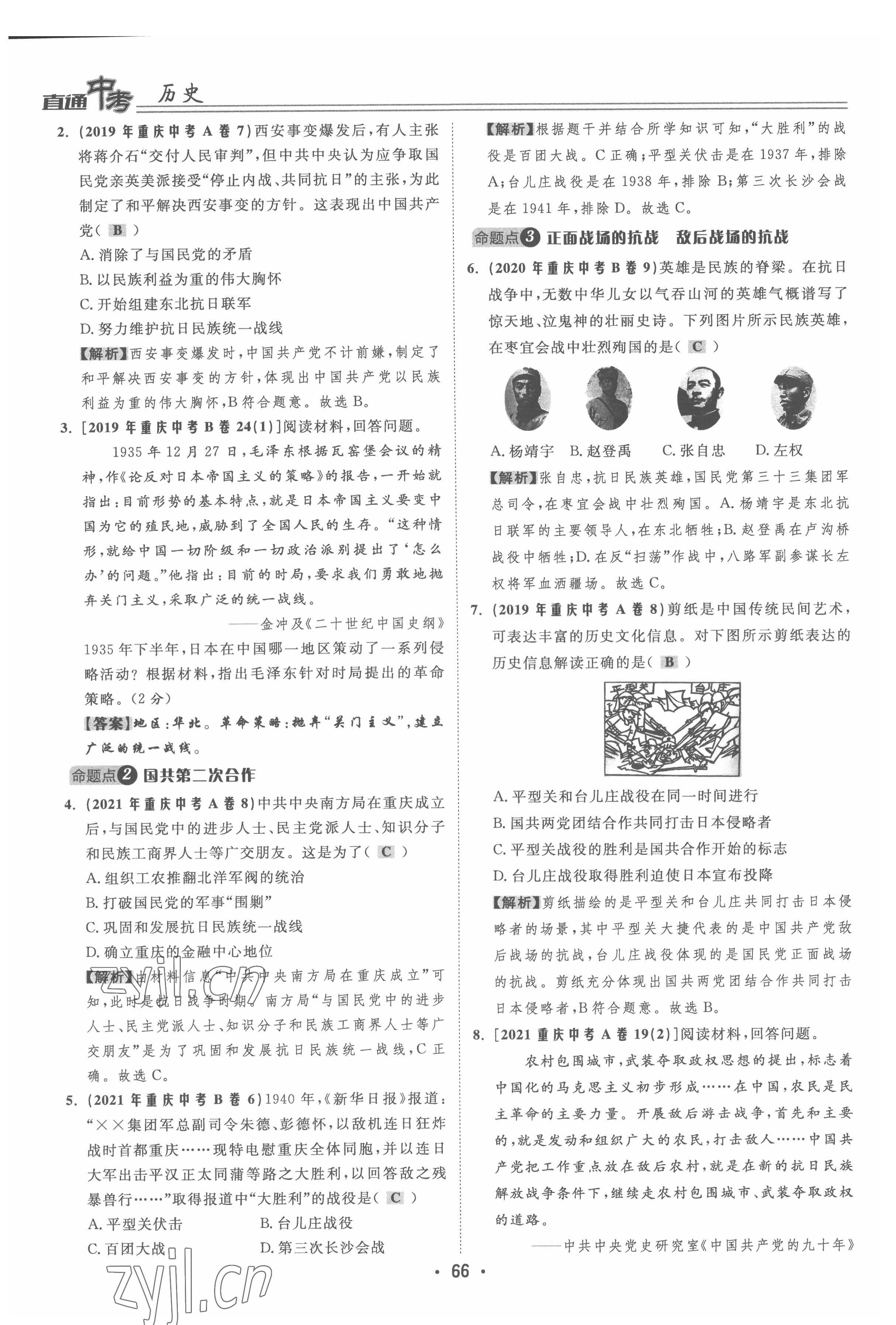 注:目前有些书本章节名称可能整理的还不是很完善,但都是按照顺序排列的,请同学们按照顺序仔细查找。练习册 2022年直通中考历史重庆专版 答案主要是用来给同学们做完题方便对答案用的,请勿直接抄袭。