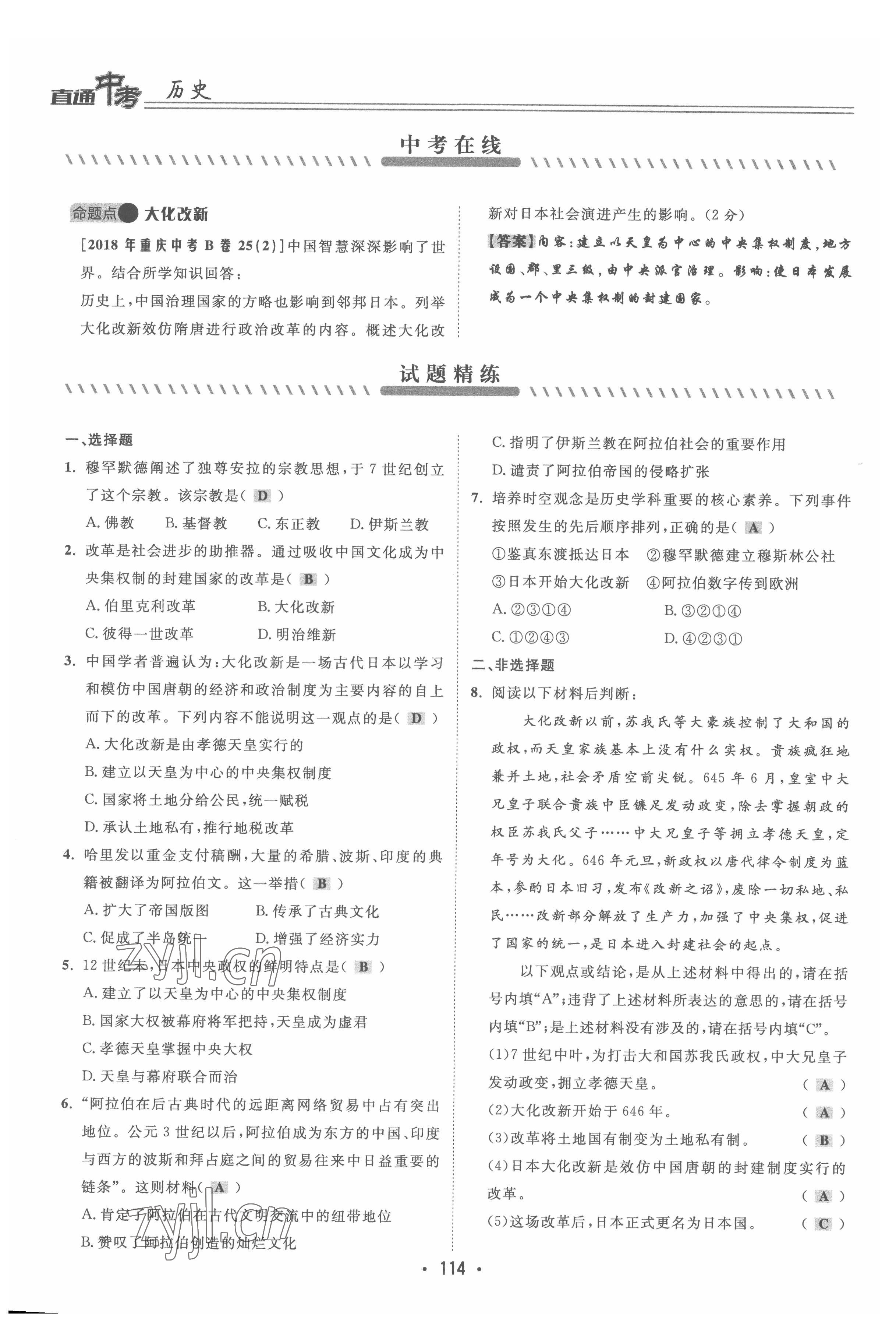 注:目前有些书本章节名称可能整理的还不是很完善,但都是按照顺序排列的,请同学们按照顺序仔细查找。练习册 2022年直通中考历史重庆专版 答案主要是用来给同学们做完题方便对答案用的,请勿直接抄袭。