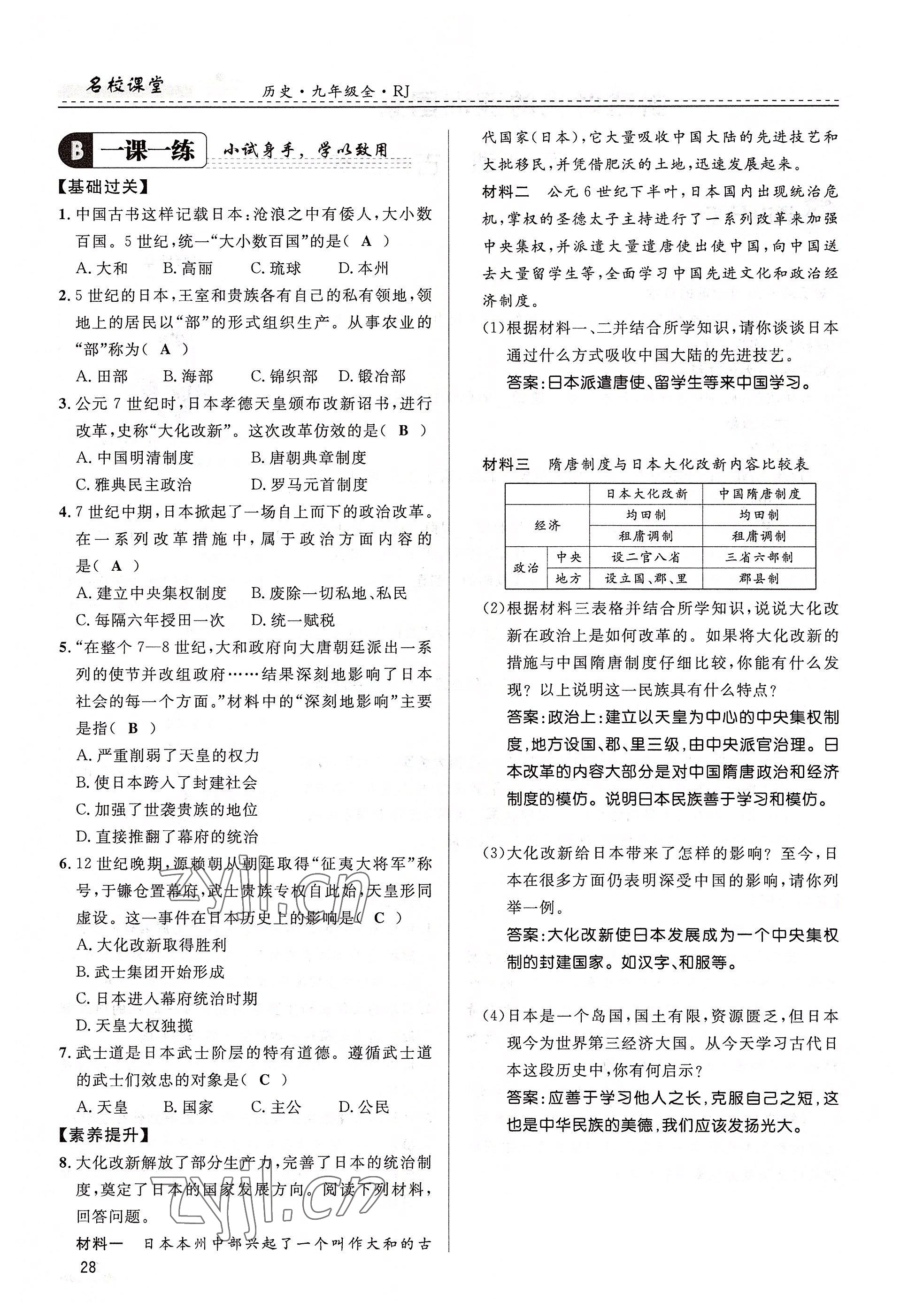2022年名校课堂贵州人民出版社九年级历史全一册人教版