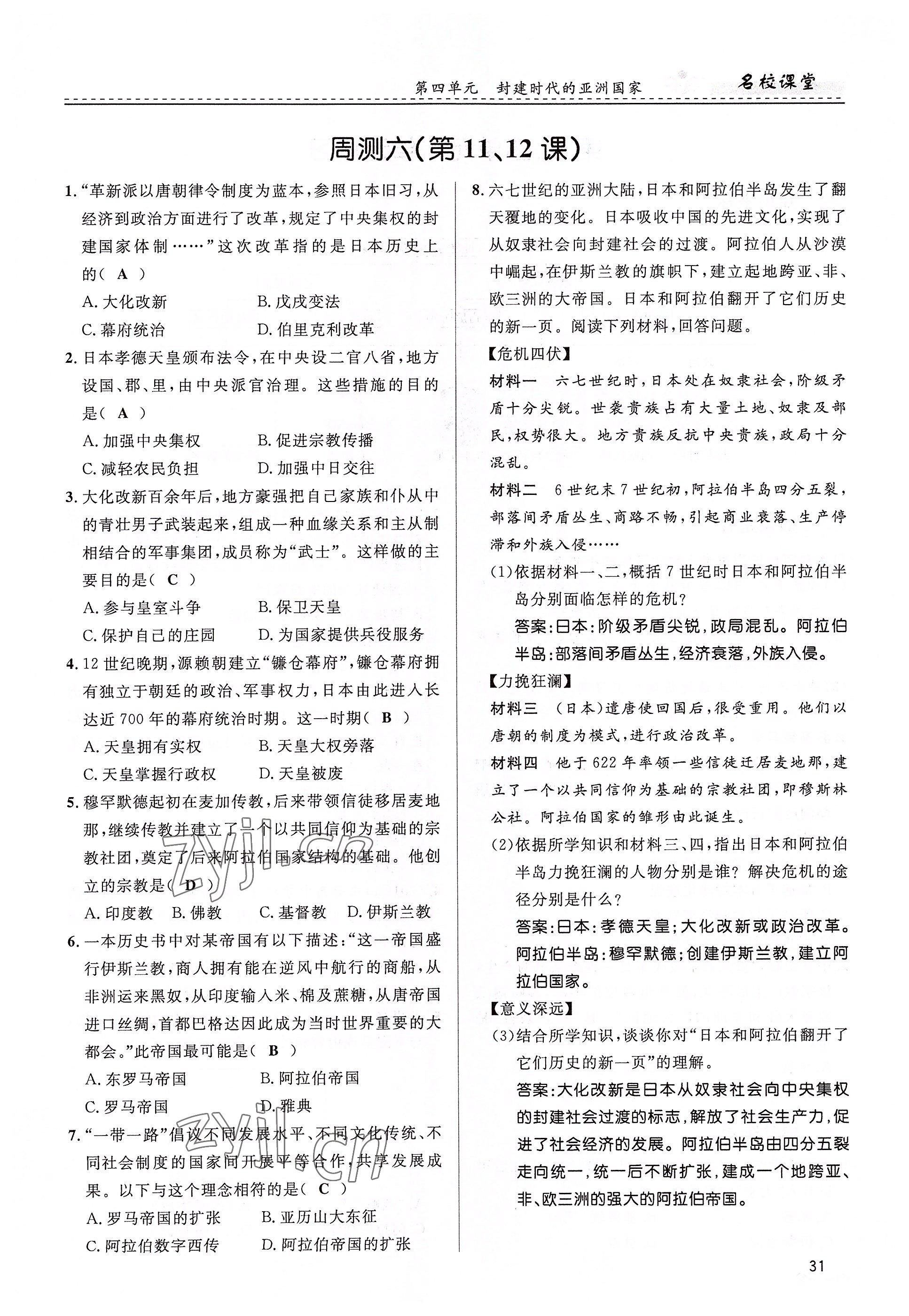 2022年名校课堂贵州人民出版社九年级历史全一册人教版