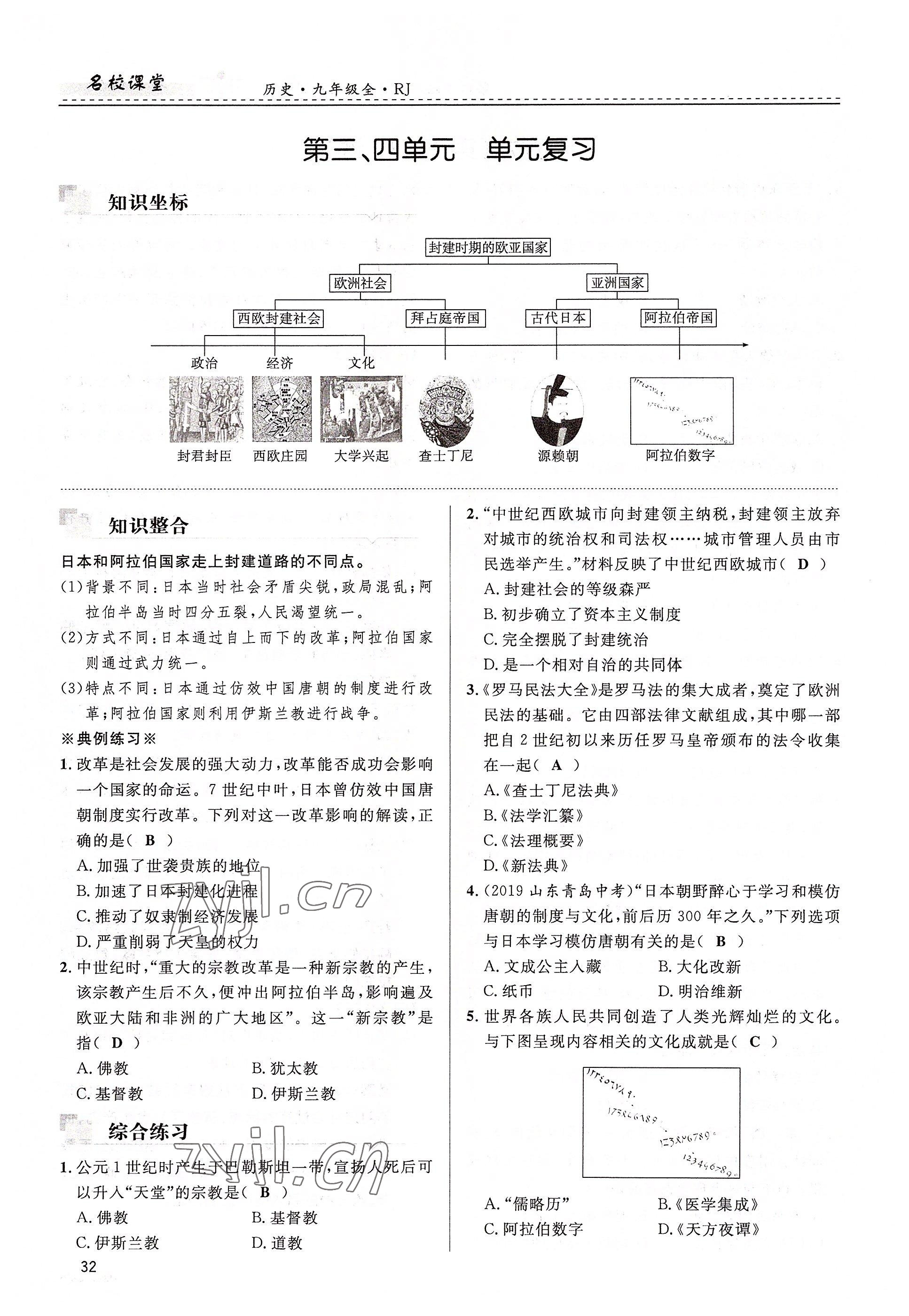 2022年名校课堂贵州人民出版社九年级历史全一册人教版