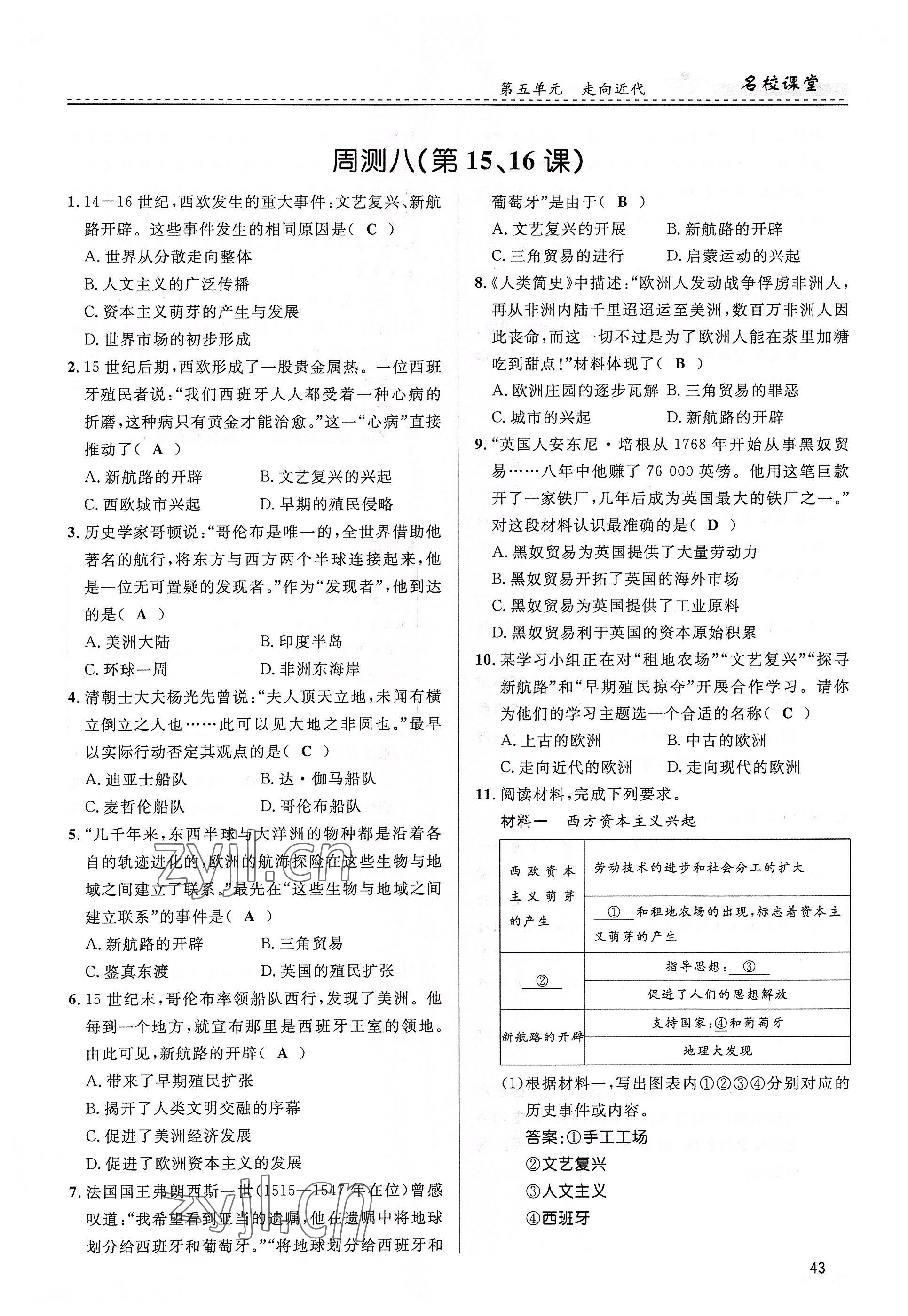 2022年名校课堂贵州人民出版社九年级历史全一册人教版