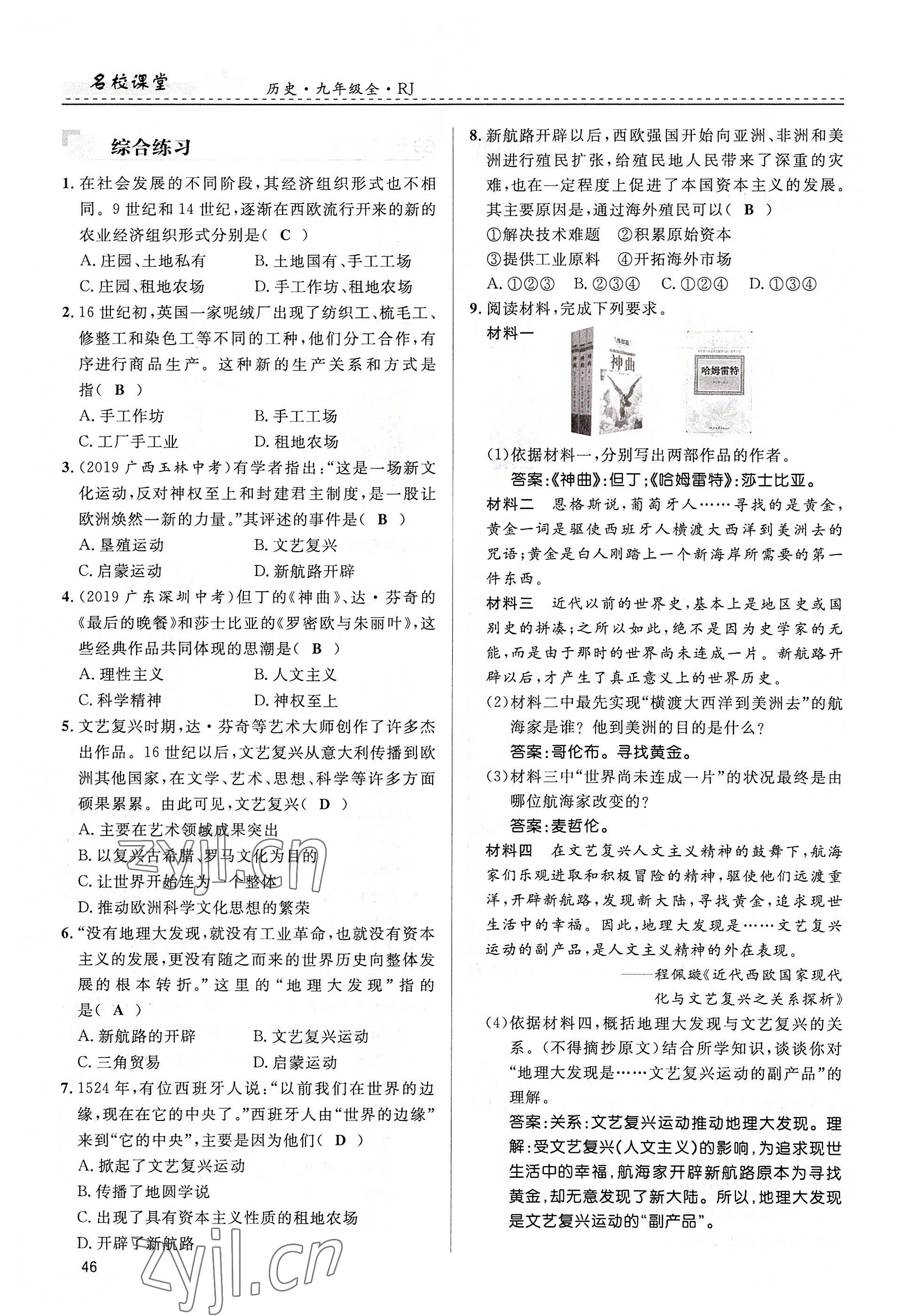 《2022年名校课堂贵州人民出版社九年级历史全一册人教版》
