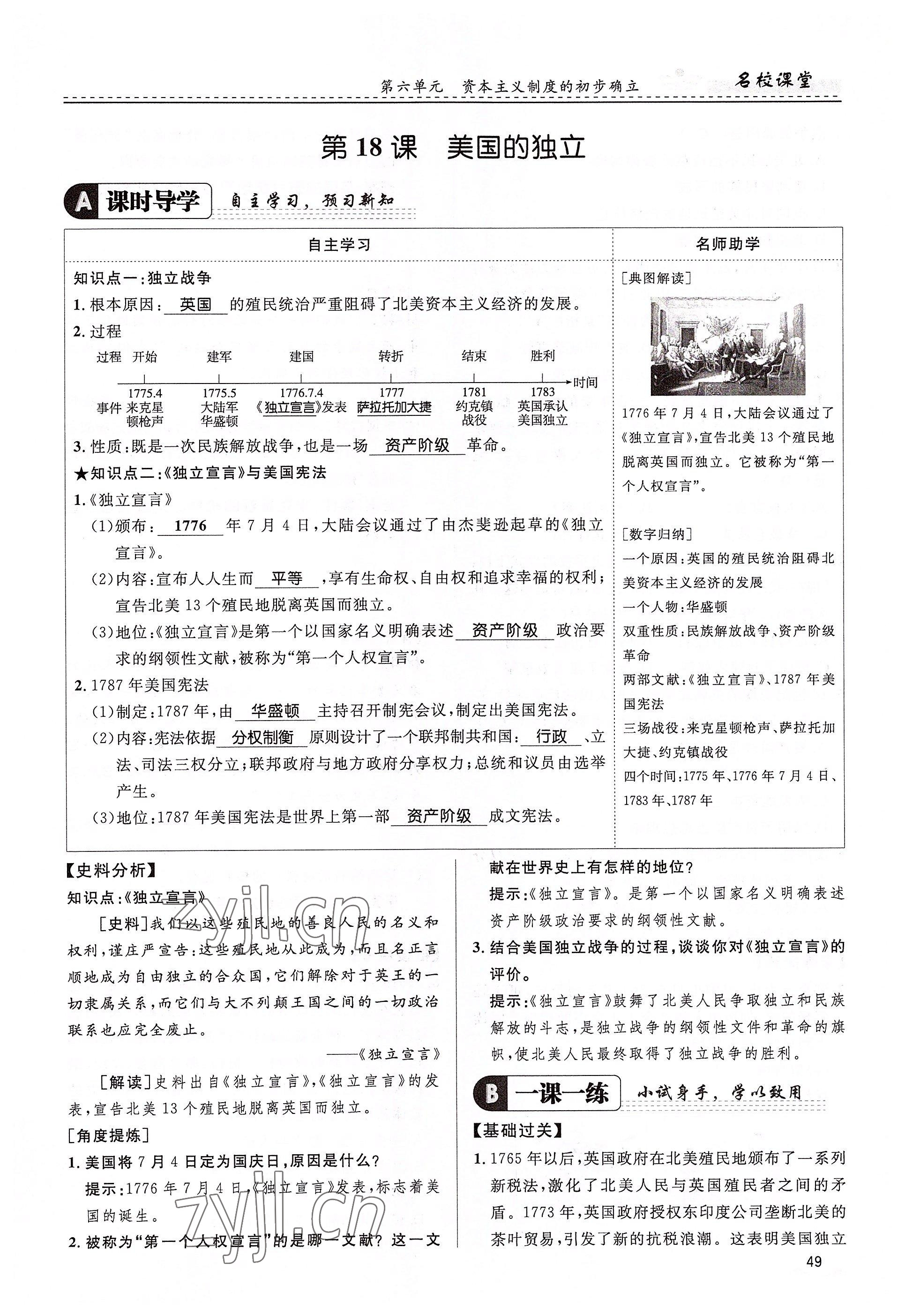 2022年名校课堂贵州人民出版社九年级历史全一册人教版