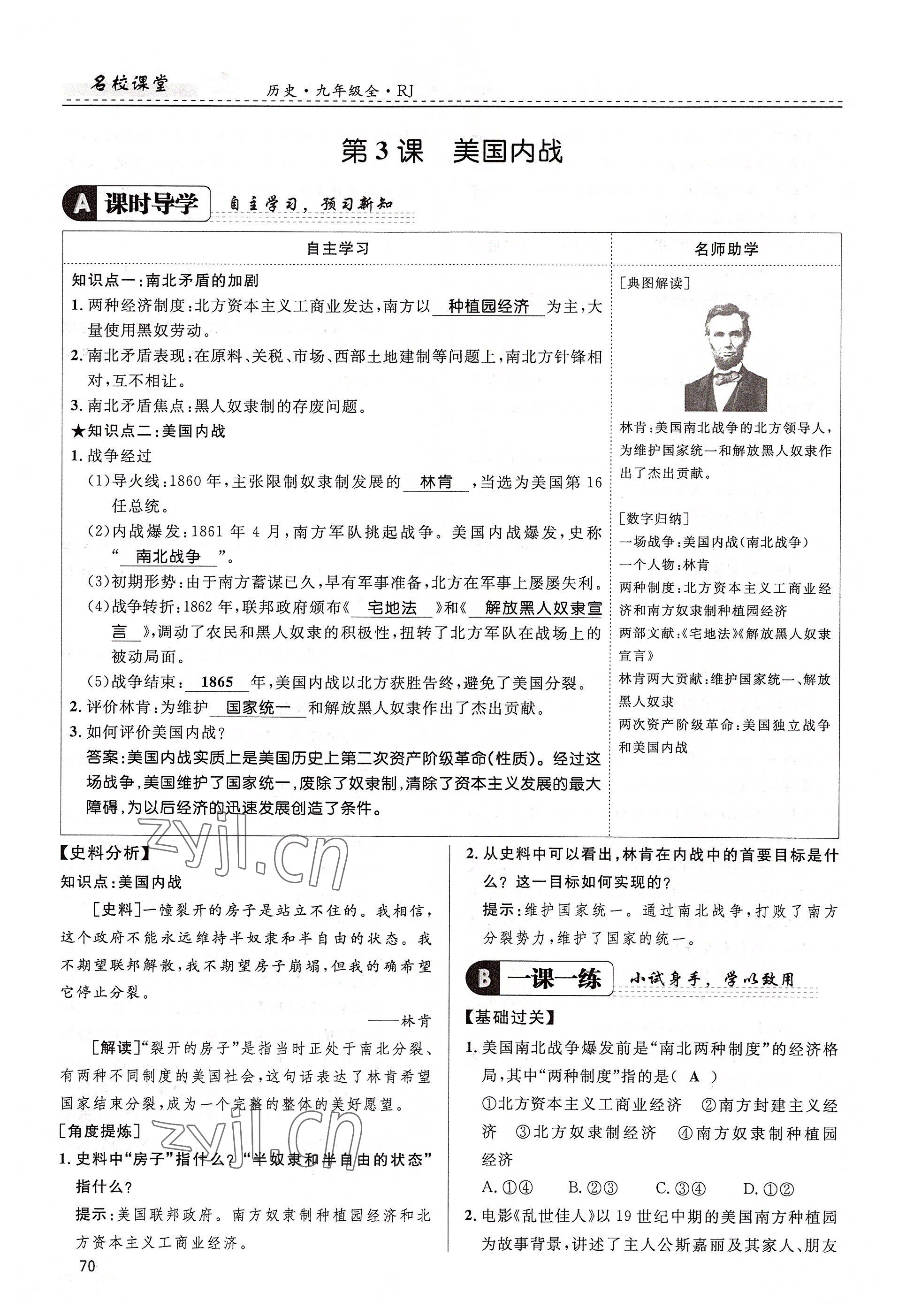 2022年名校课堂贵州人民出版社九年级历史全一册人教版