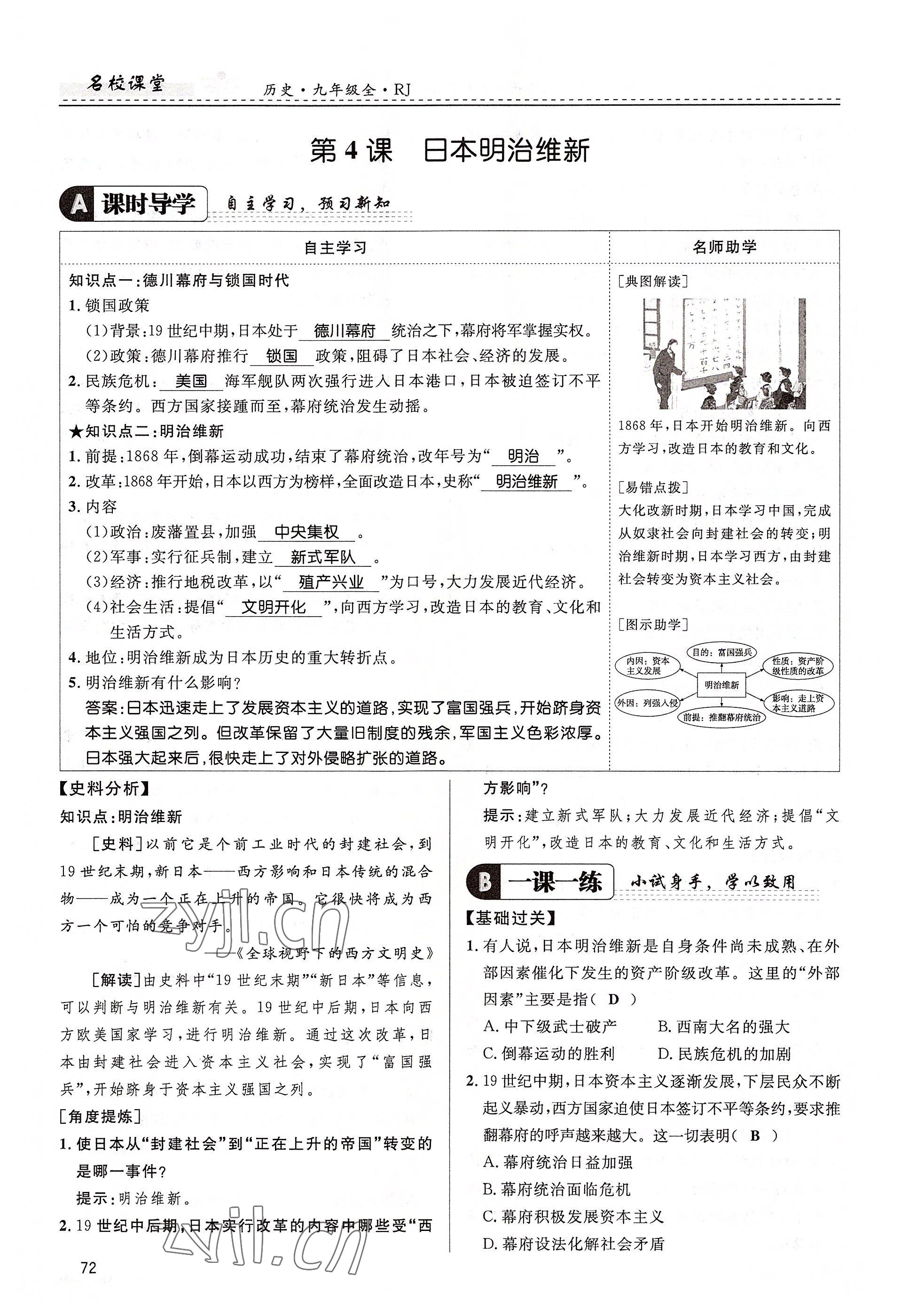 2022年名校课堂贵州人民出版社九年级历史全一册人教版