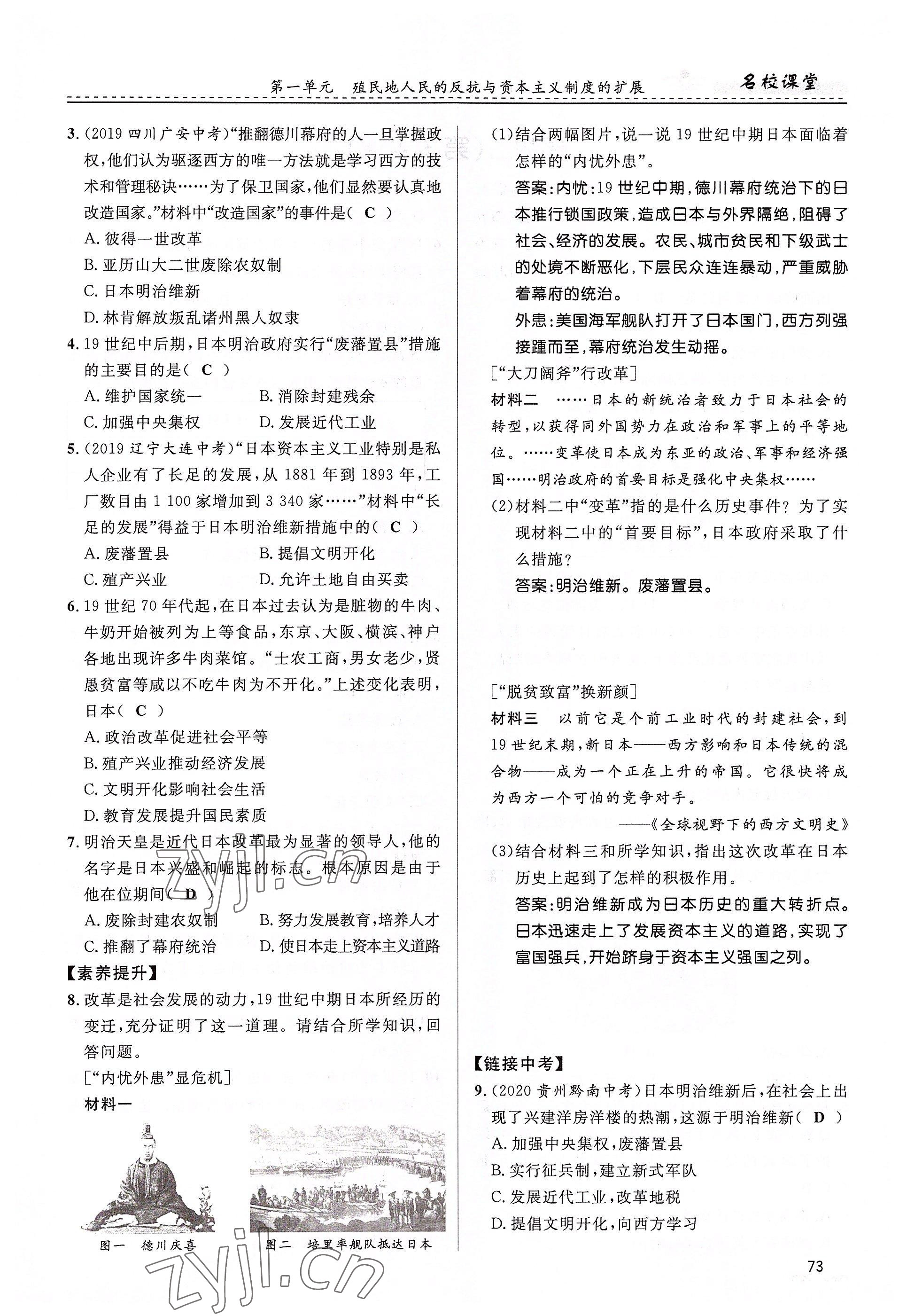 2022年名校课堂贵州人民出版社九年级历史全一册人教版