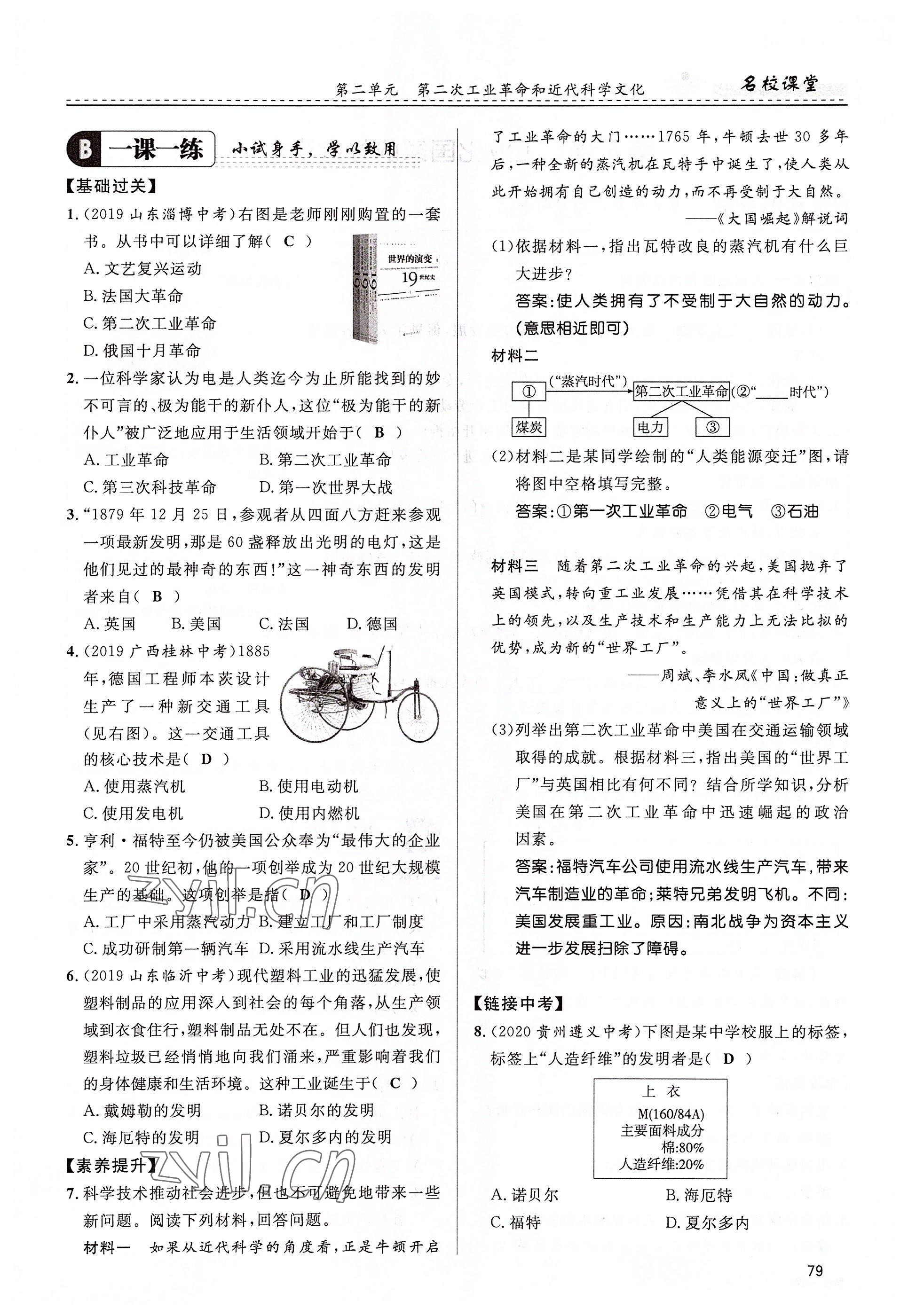 2022年名校课堂贵州人民出版社九年级历史全一册人教版