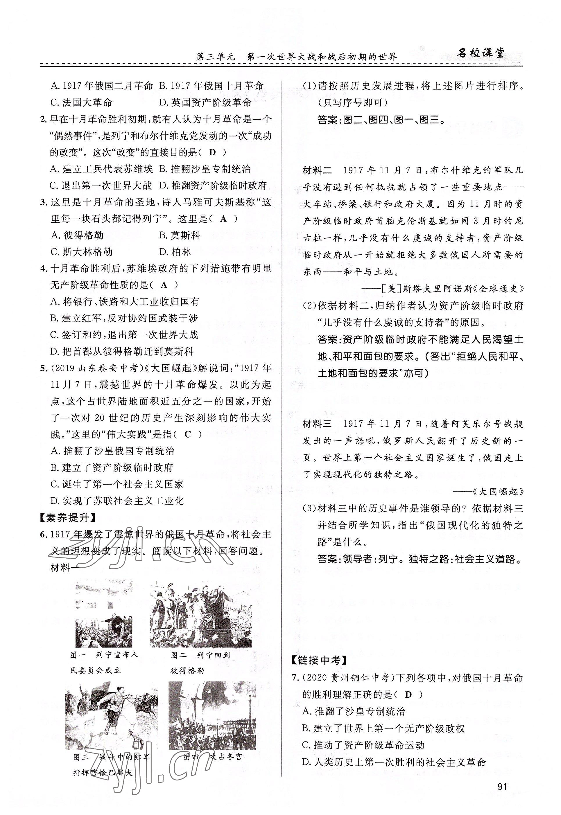 注:目前有些书本章节名称可能整理的还不是很完善,但都是按照顺序排列的,请同学们按照顺序仔细查找。练习册 2022年名校课堂贵州人民出版社九年级历史全一册人教版 答案主要是用来给同学们做完题方便对答案用的,请勿直接抄袭。