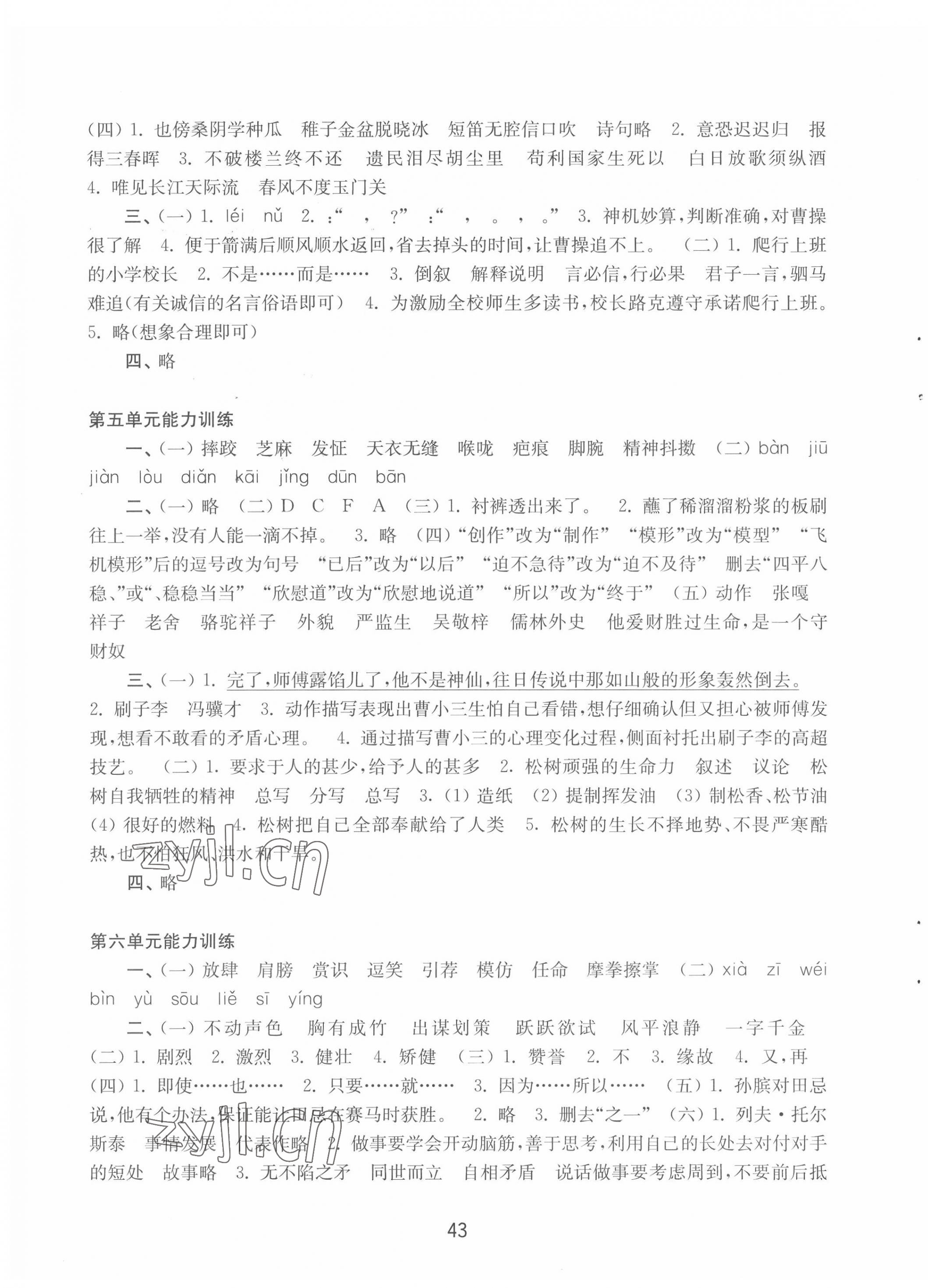 注:目前有些书本章节名称可能整理的还不是很完善,但都是按照顺序排列的,请同学们按照顺序仔细查找。练习册 2022年强化练习五年级语文下册人教版 答案主要是用来给同学们做完题方便对答案用的,请勿直接抄袭。