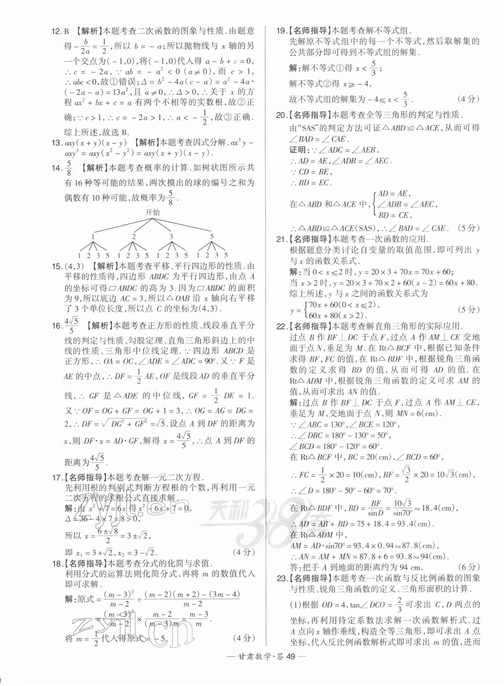 注:目前有些书本章节名称可能整理的还不是很完善,但都是按照顺序排列的,请同学们按照顺序仔细查找。练习册 2022年天利38套中考试题精选数学甘肃专版 答案主要是用来给同学们做完题方便对答案用的,请勿直接抄袭。