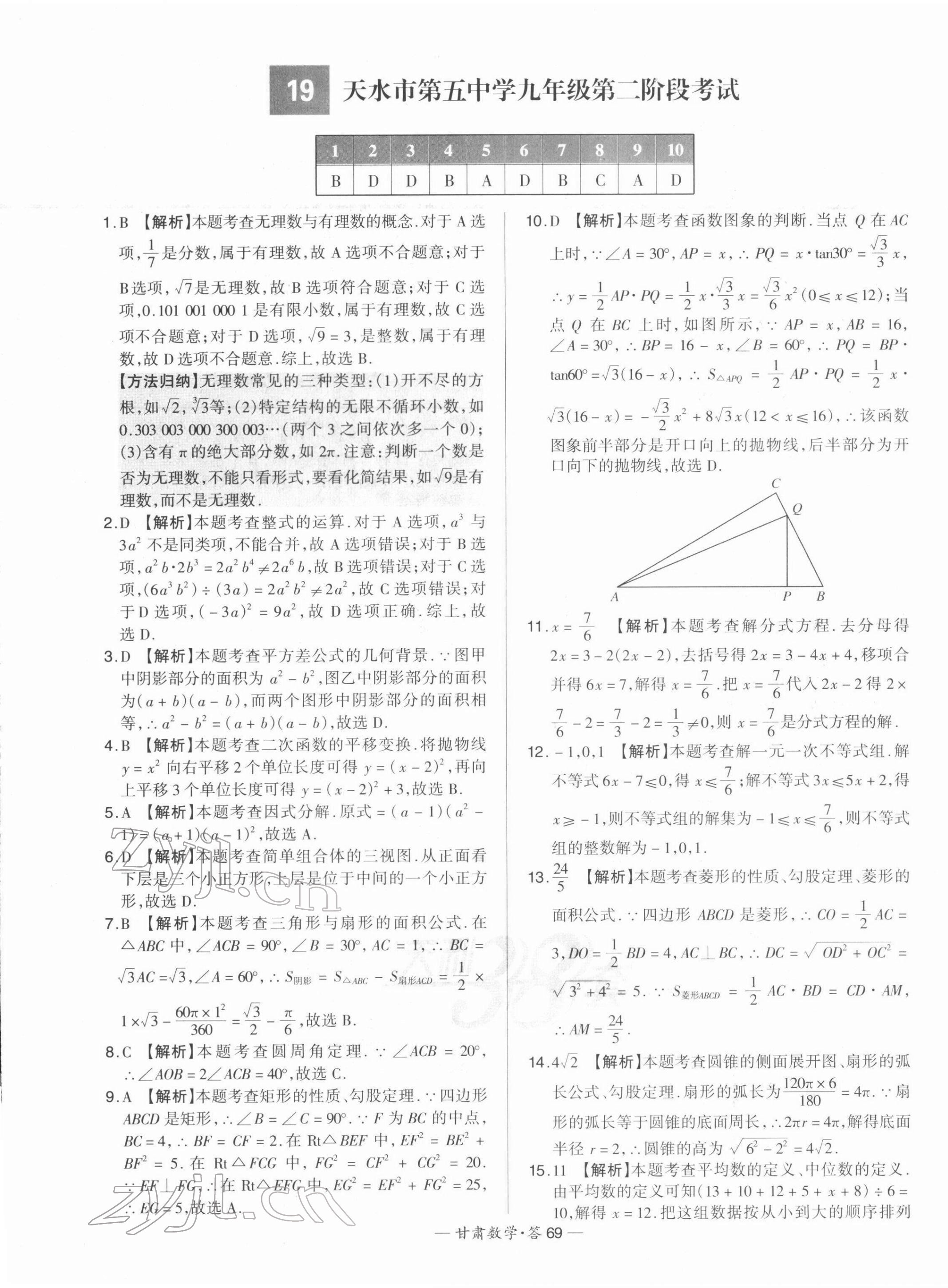注:目前有些书本章节名称可能整理的还不是很完善,但都是按照顺序排列的,请同学们按照顺序仔细查找。练习册 2022年天利38套中考试题精选数学甘肃专版 答案主要是用来给同学们做完题方便对答案用的,请勿直接抄袭。