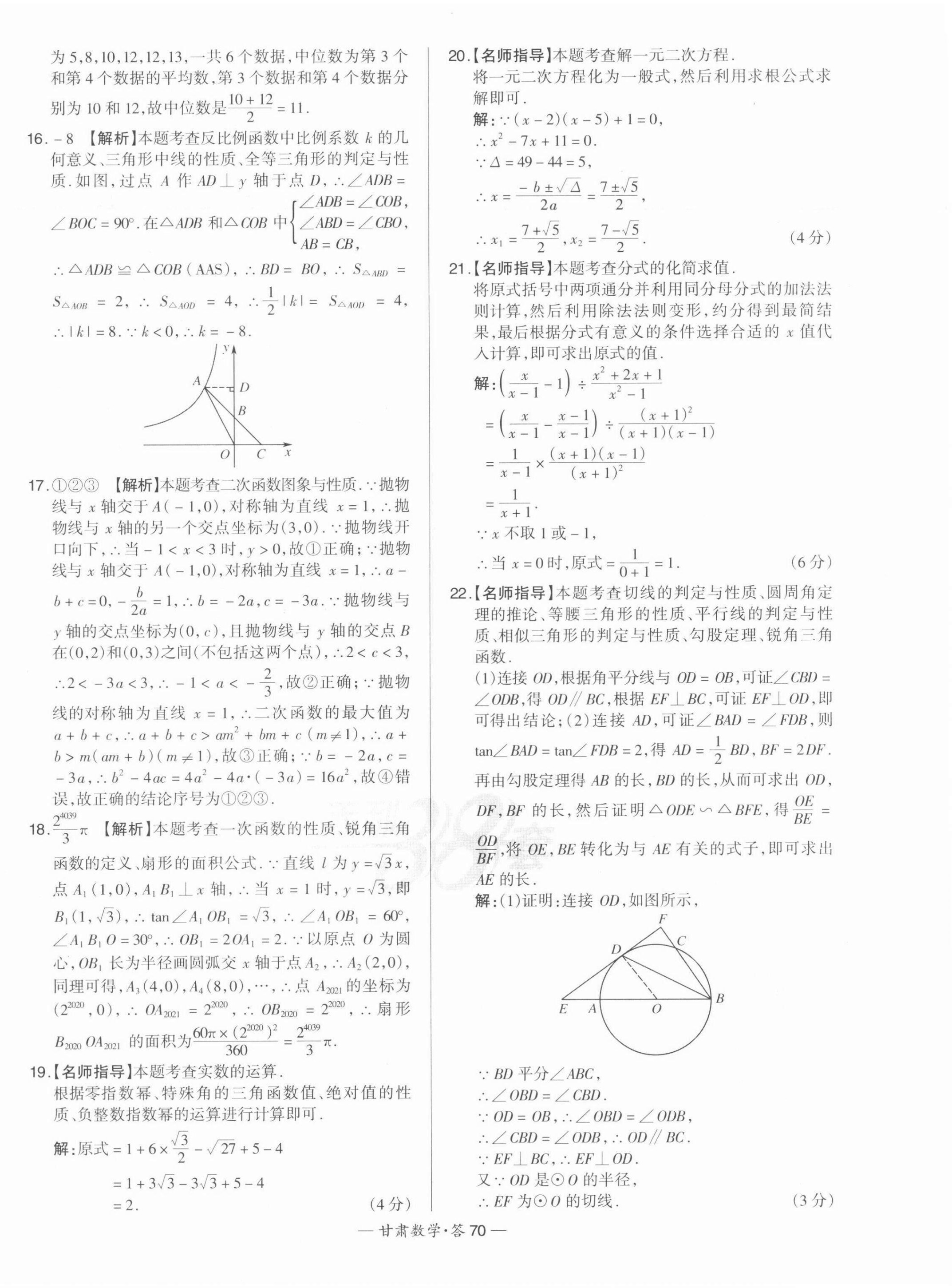 注:目前有些书本章节名称可能整理的还不是很完善,但都是按照顺序排列的,请同学们按照顺序仔细查找。练习册 2022年天利38套中考试题精选数学甘肃专版 答案主要是用来给同学们做完题方便对答案用的,请勿直接抄袭。