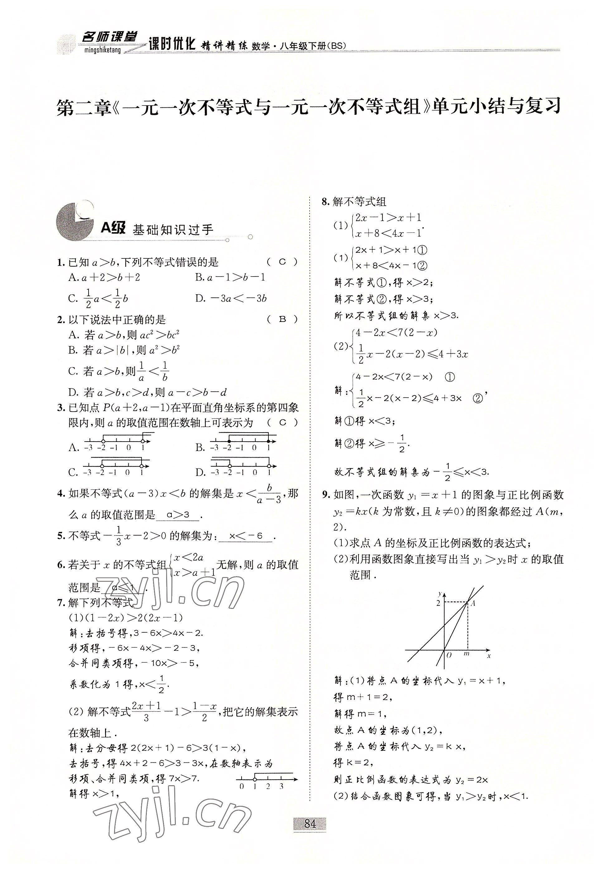 注:目前有些书本章节名称可能整理的还不是很完善,但都是按照顺序排列的,请同学们按照顺序仔细查找。练习册 2022年名师课堂课时优化精讲精练八年级数学下册北师大版 答案主要是用来给同学们做完题方便对答案用的,请勿直接抄袭。