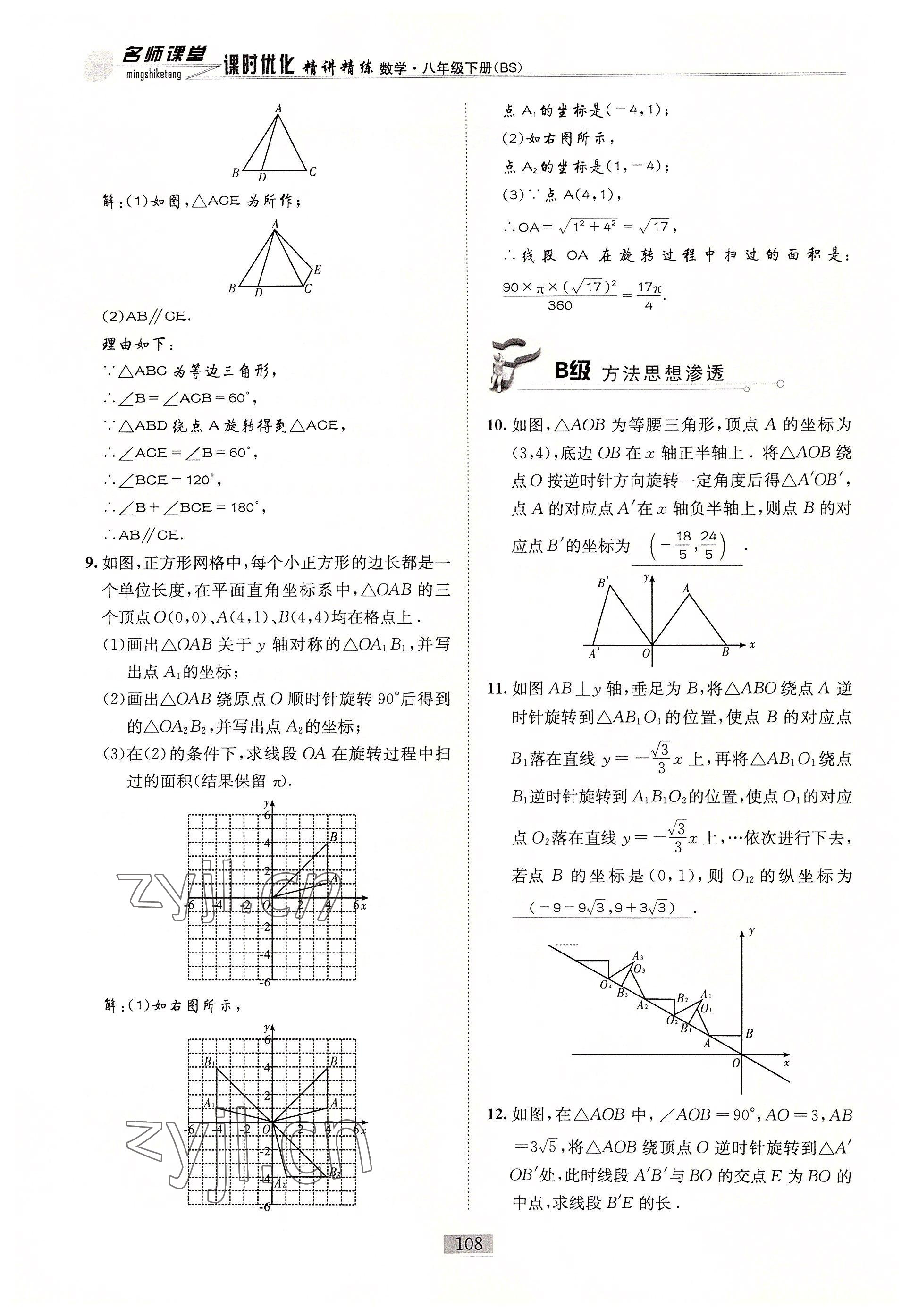 注:目前有些书本章节名称可能整理的还不是很完善,但都是按照顺序排列的,请同学们按照顺序仔细查找。练习册 2022年名师课堂课时优化精讲精练八年级数学下册北师大版 答案主要是用来给同学们做完题方便对答案用的,请勿直接抄袭。