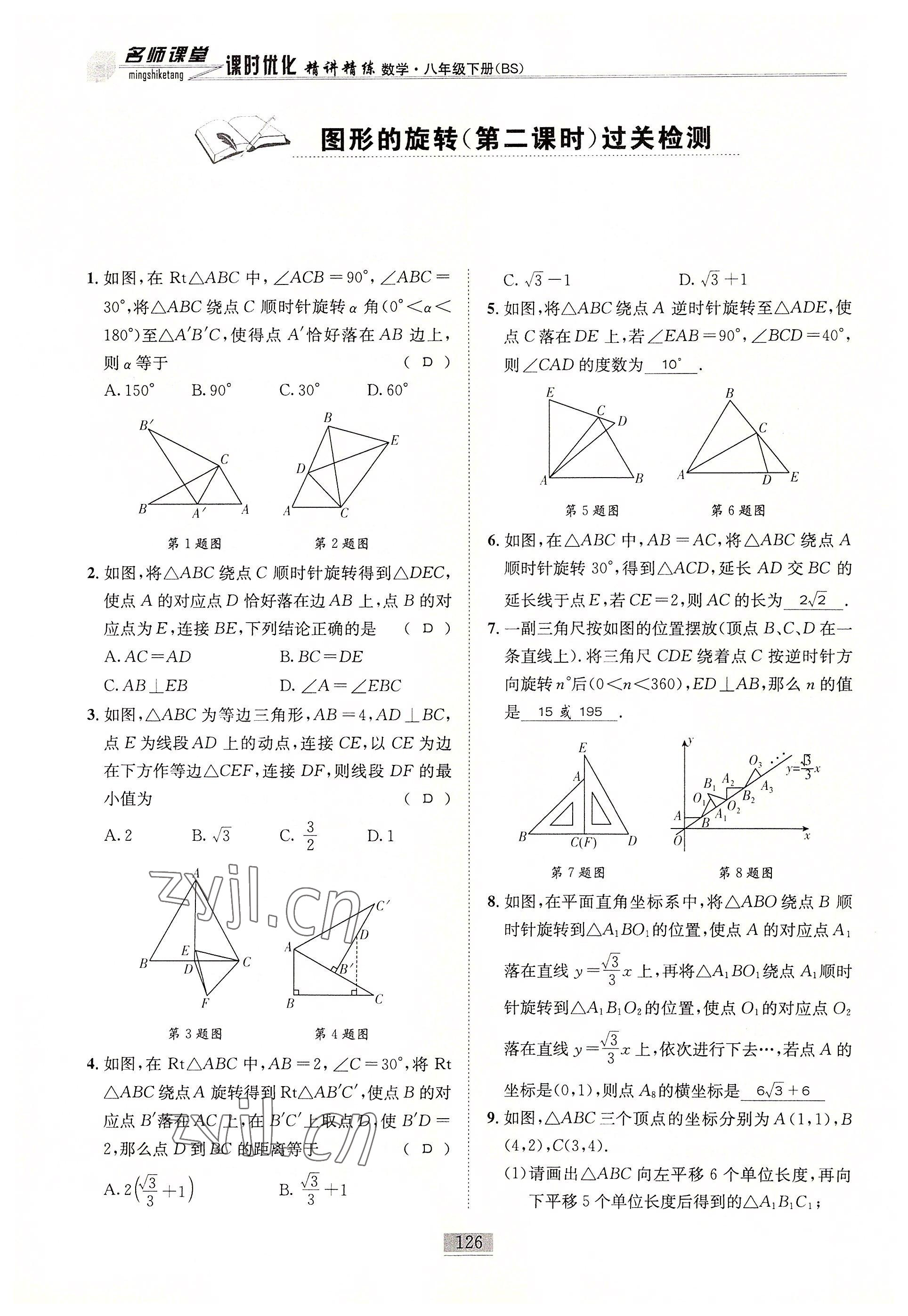 注:目前有些书本章节名称可能整理的还不是很完善,但都是按照顺序排列的,请同学们按照顺序仔细查找。练习册 2022年名师课堂课时优化精讲精练八年级数学下册北师大版 答案主要是用来给同学们做完题方便对答案用的,请勿直接抄袭。
