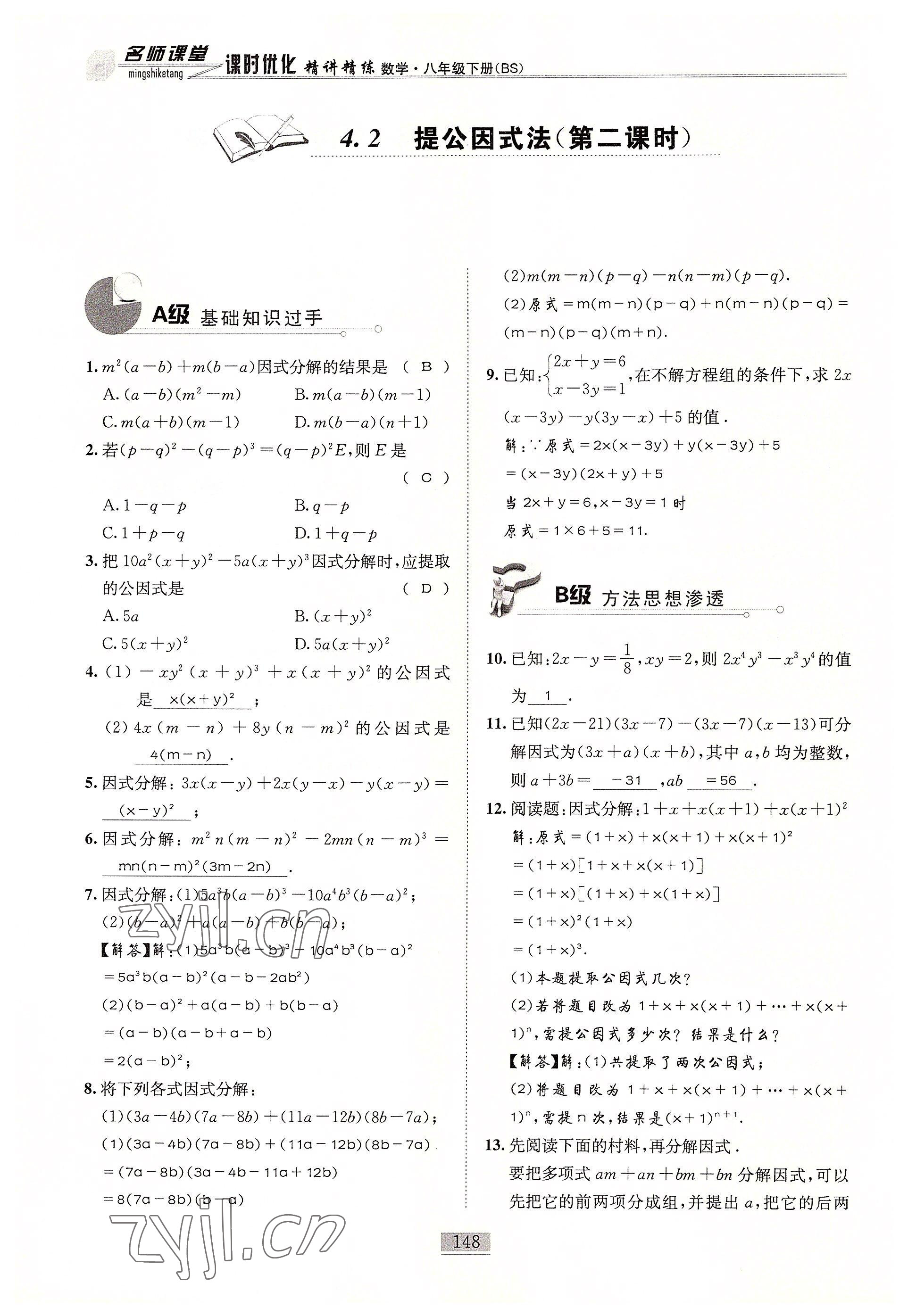 2022年名师课堂课时优化精讲精练八年级数学下册北师大版