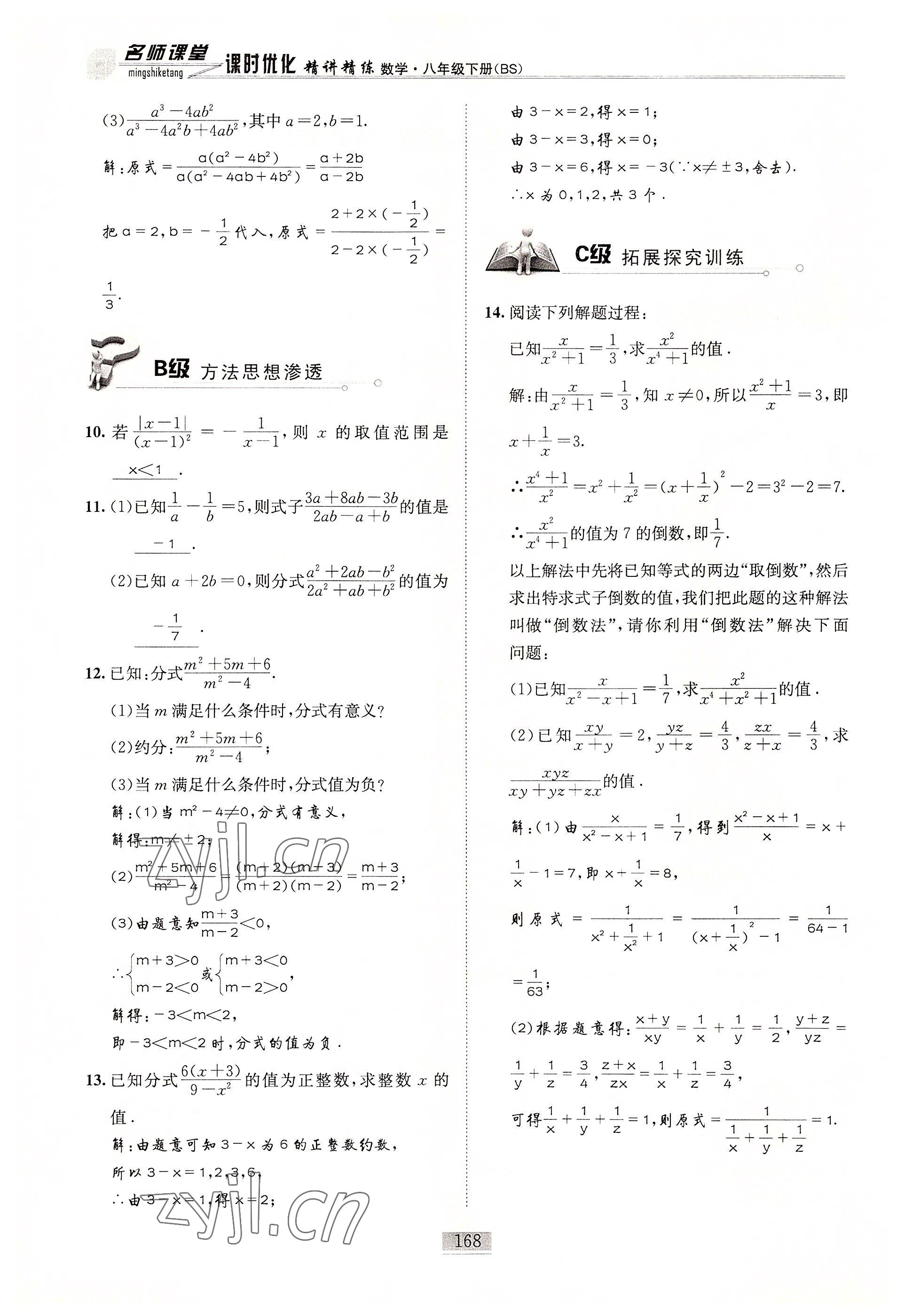 注:目前有些书本章节名称可能整理的还不是很完善,但都是按照顺序排列的,请同学们按照顺序仔细查找。练习册 2022年名师课堂课时优化精讲精练八年级数学下册北师大版 答案主要是用来给同学们做完题方便对答案用的,请勿直接抄袭。