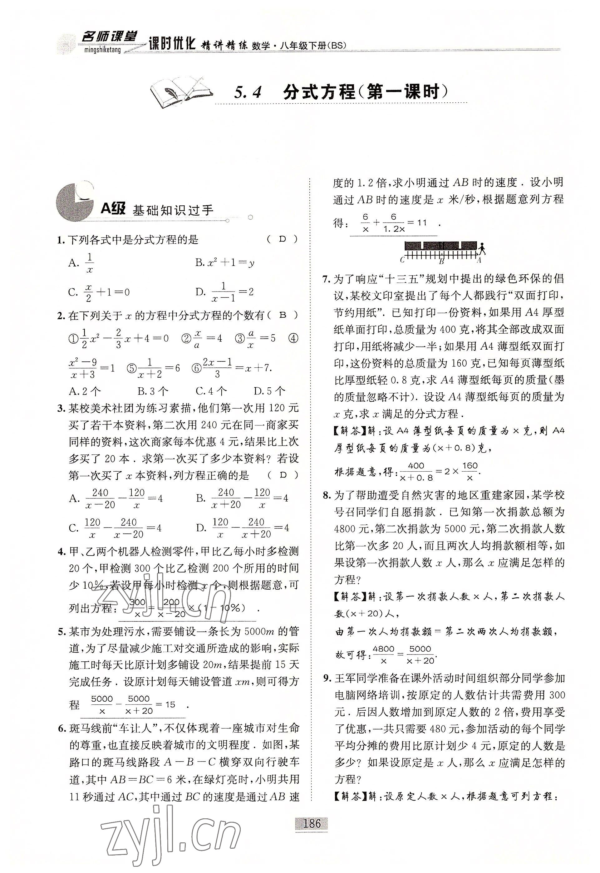 2022年名师课堂课时优化精讲精练八年级数学下册北师大版