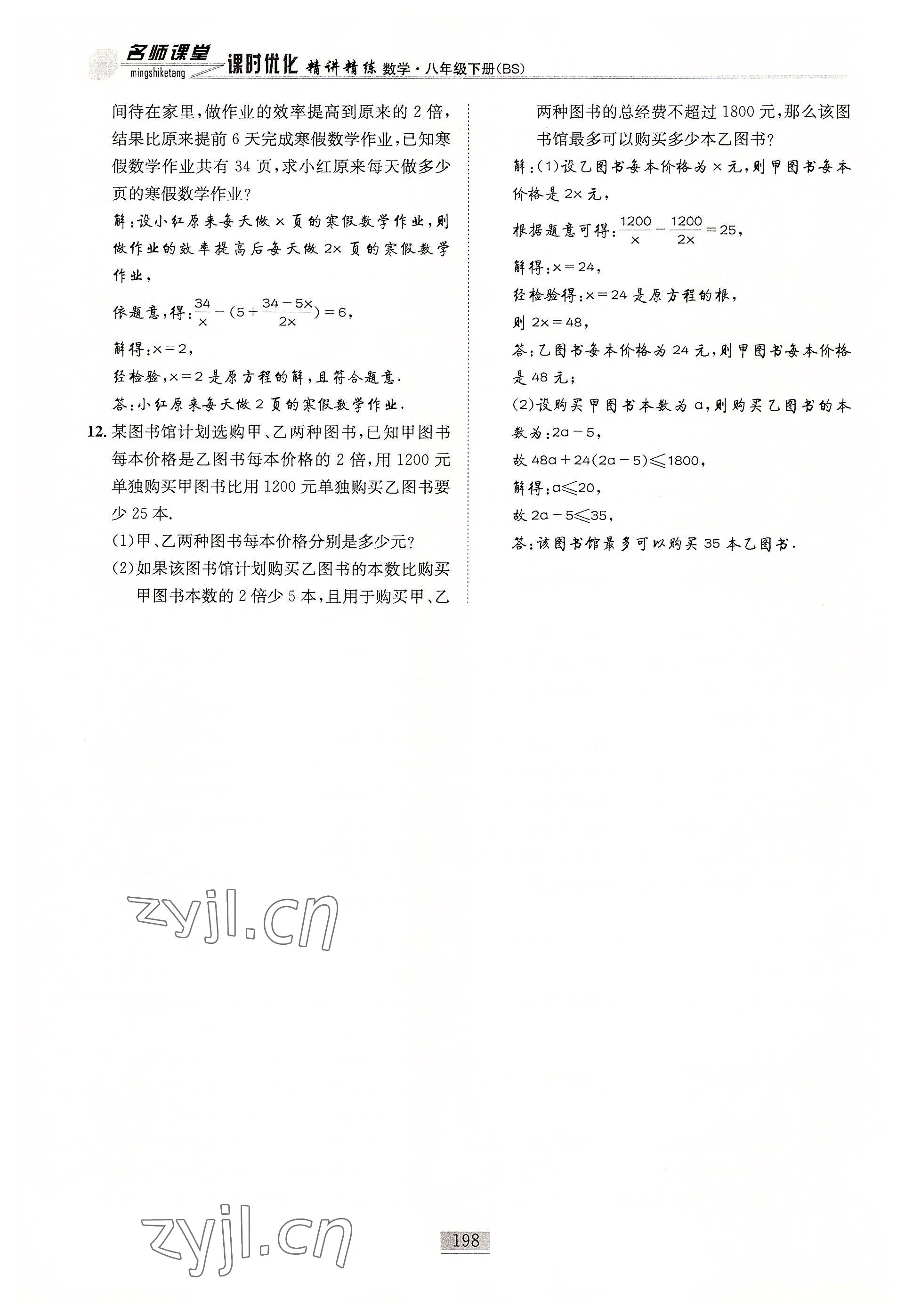2022年名师课堂课时优化精讲精练八年级数学下册北师大版