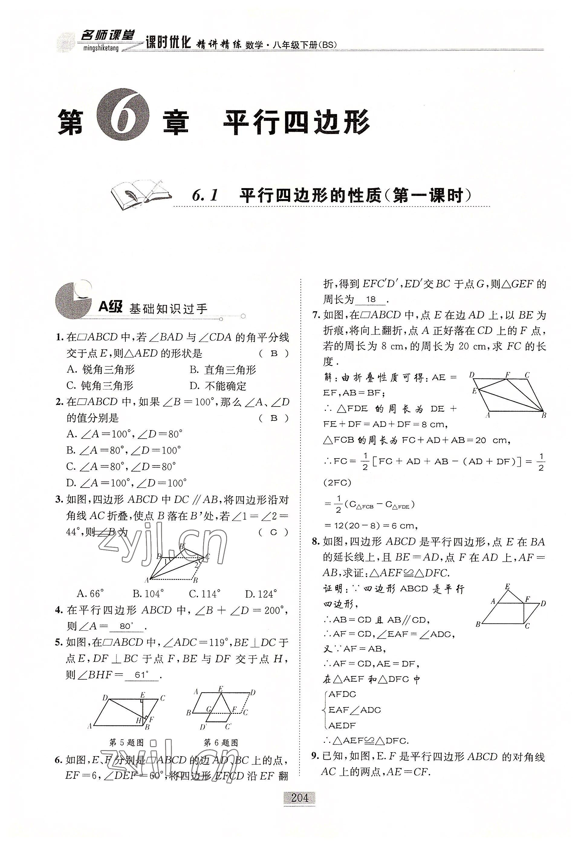 注:目前有些书本章节名称可能整理的还不是很完善,但都是按照顺序排列的,请同学们按照顺序仔细查找。练习册 2022年名师课堂课时优化精讲精练八年级数学下册北师大版 答案主要是用来给同学们做完题方便对答案用的,请勿直接抄袭。