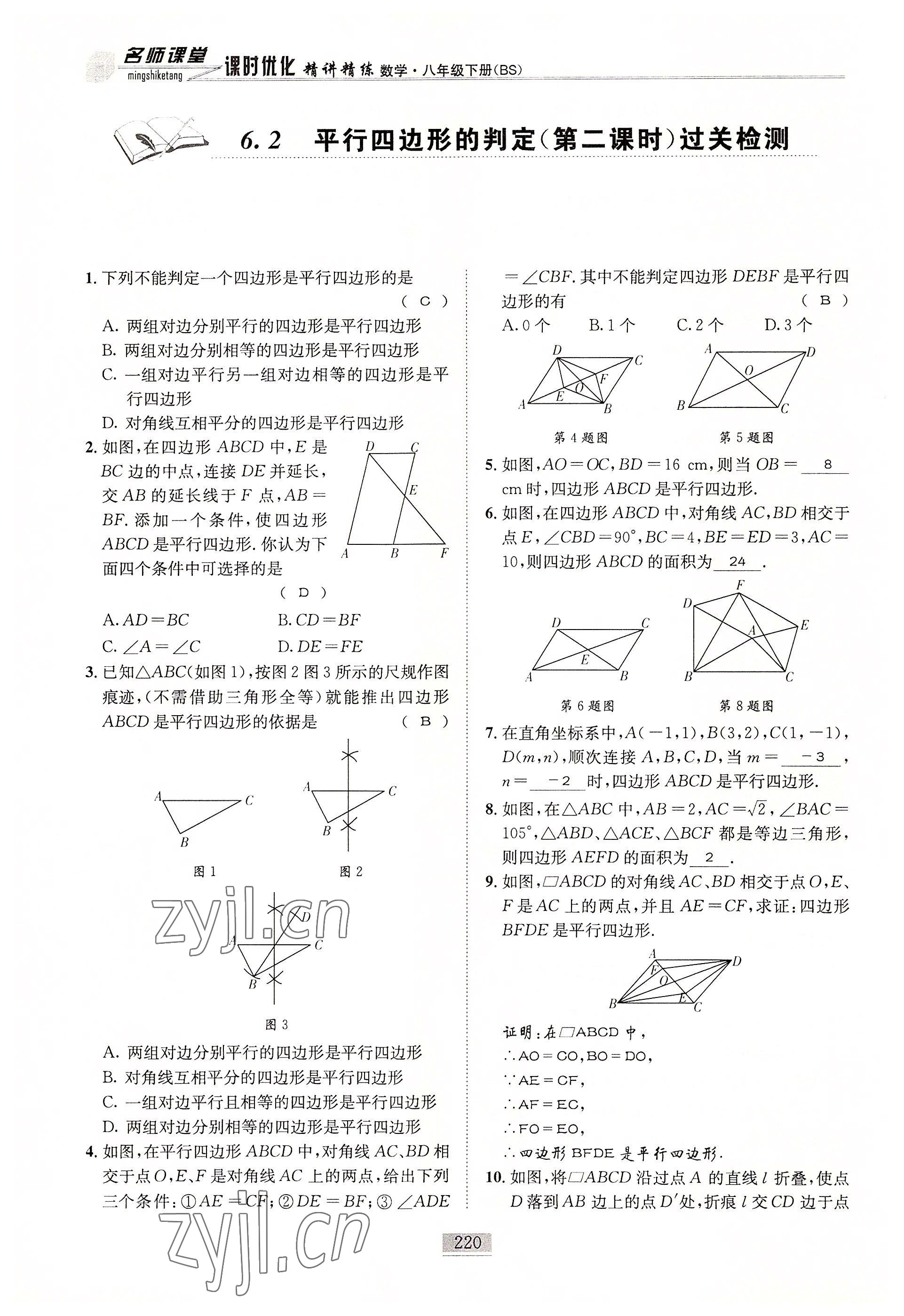 注:目前有些书本章节名称可能整理的还不是很完善,但都是按照顺序排列的,请同学们按照顺序仔细查找。练习册 2022年名师课堂课时优化精讲精练八年级数学下册北师大版 答案主要是用来给同学们做完题方便对答案用的,请勿直接抄袭。