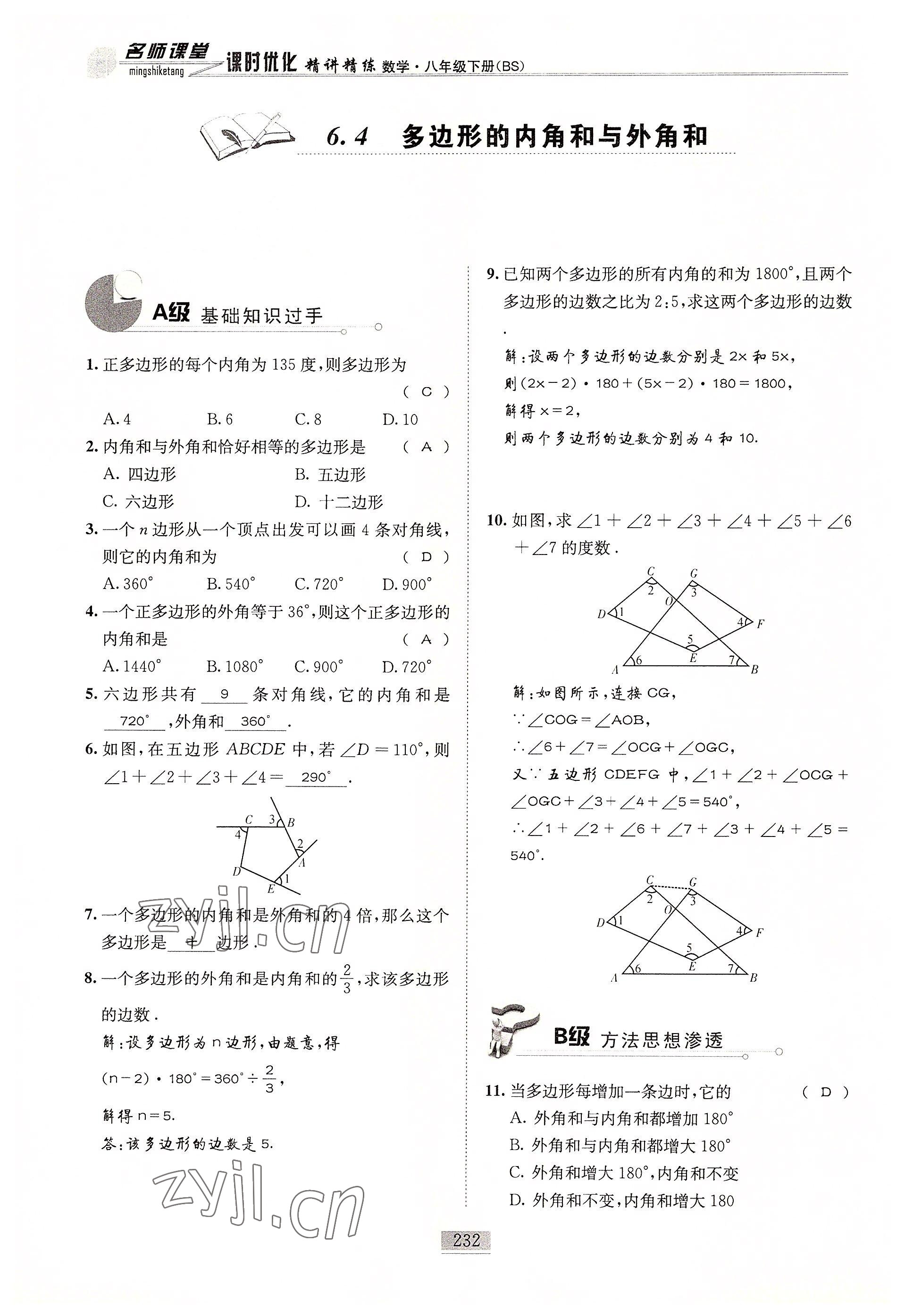 2022年名师课堂课时优化精讲精练八年级数学下册北师大版
