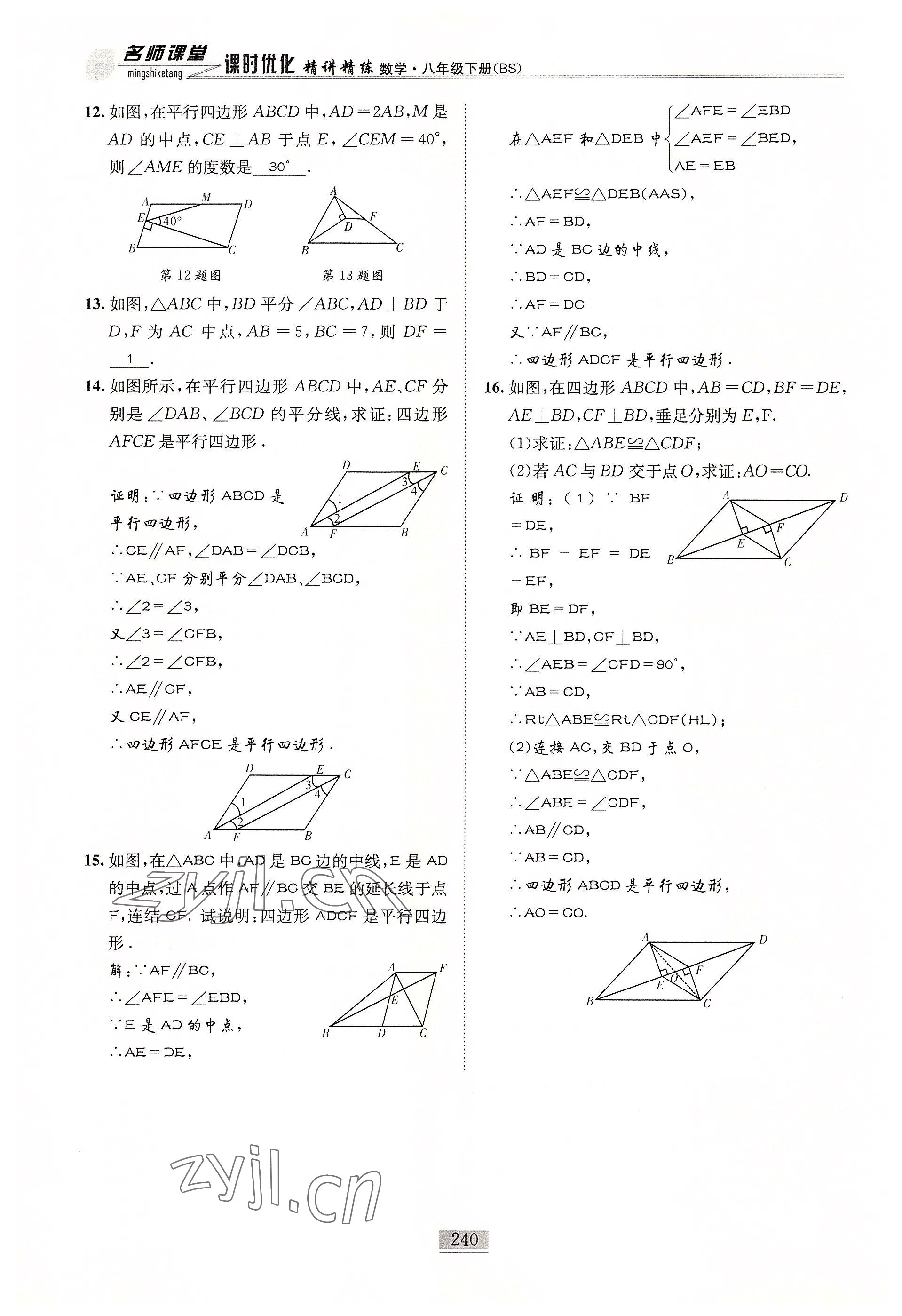 2022年名师课堂课时优化精讲精练八年级数学下册北师大版