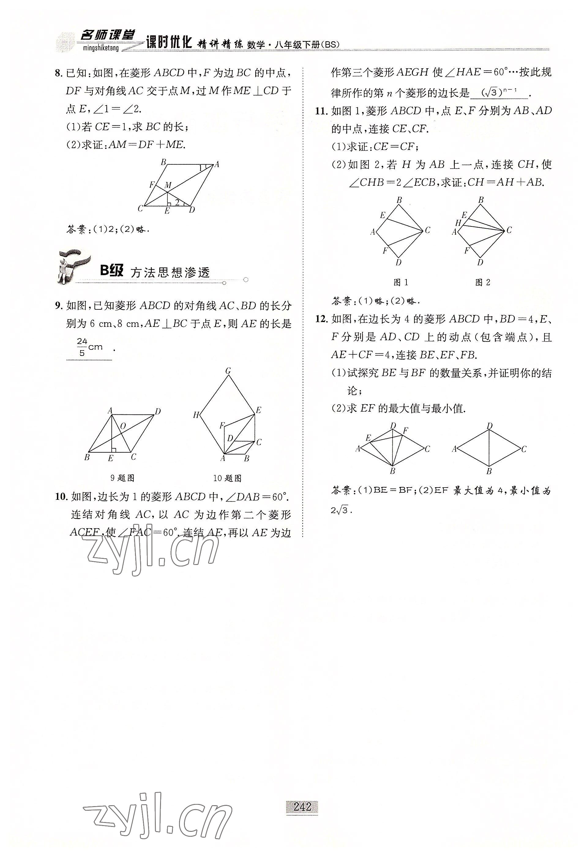 2022年名师课堂课时优化精讲精练八年级数学下册北师大版