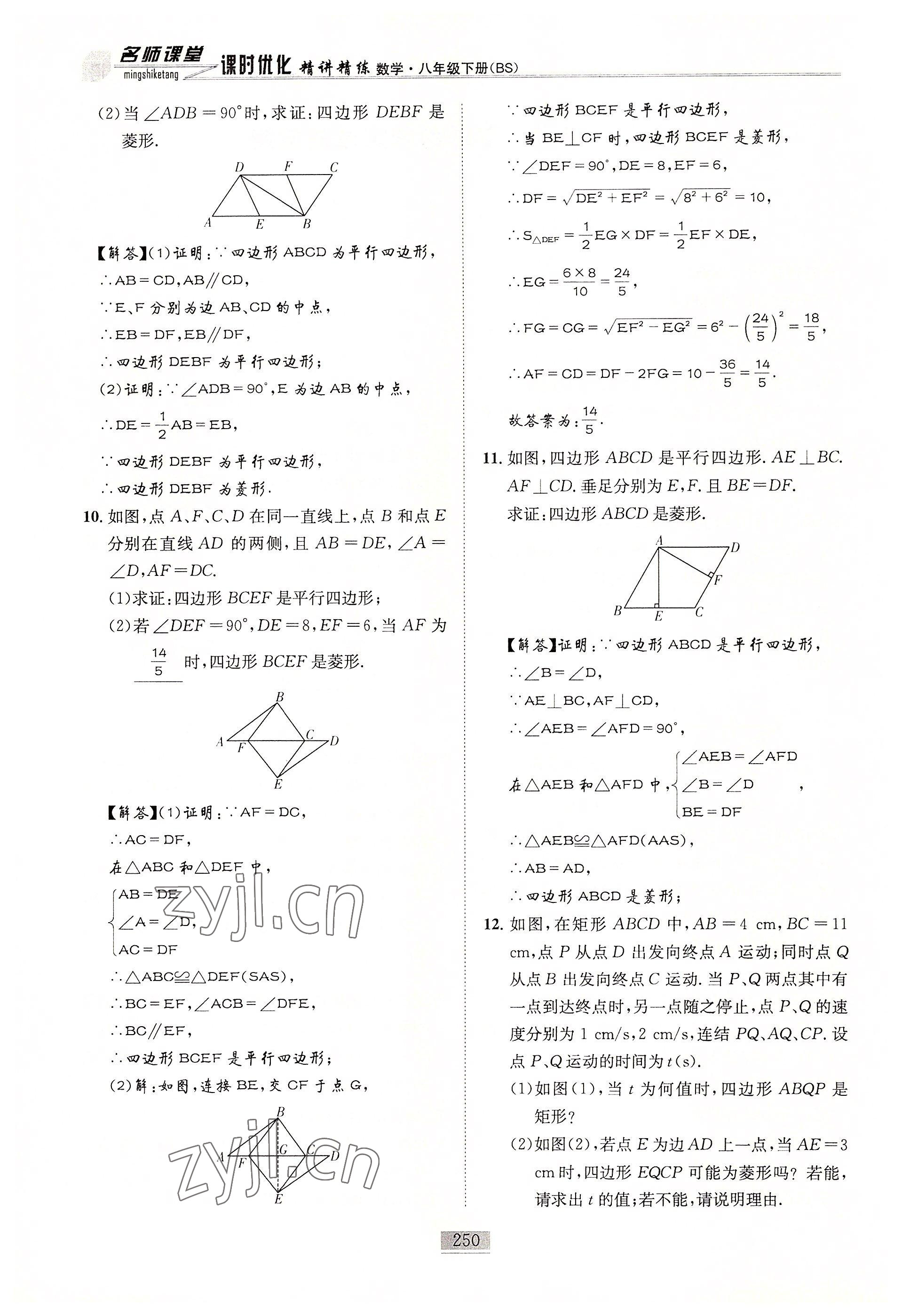 2022年名师课堂课时优化精讲精练八年级数学下册北师大版
