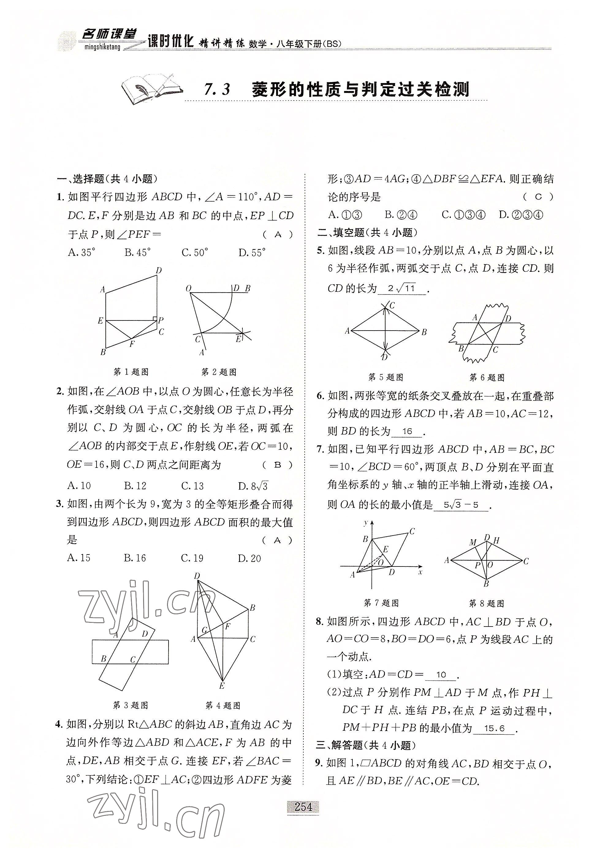 注:目前有些书本章节名称可能整理的还不是很完善,但都是按照顺序排列的,请同学们按照顺序仔细查找。练习册 2022年名师课堂课时优化精讲精练八年级数学下册北师大版 答案主要是用来给同学们做完题方便对答案用的,请勿直接抄袭。