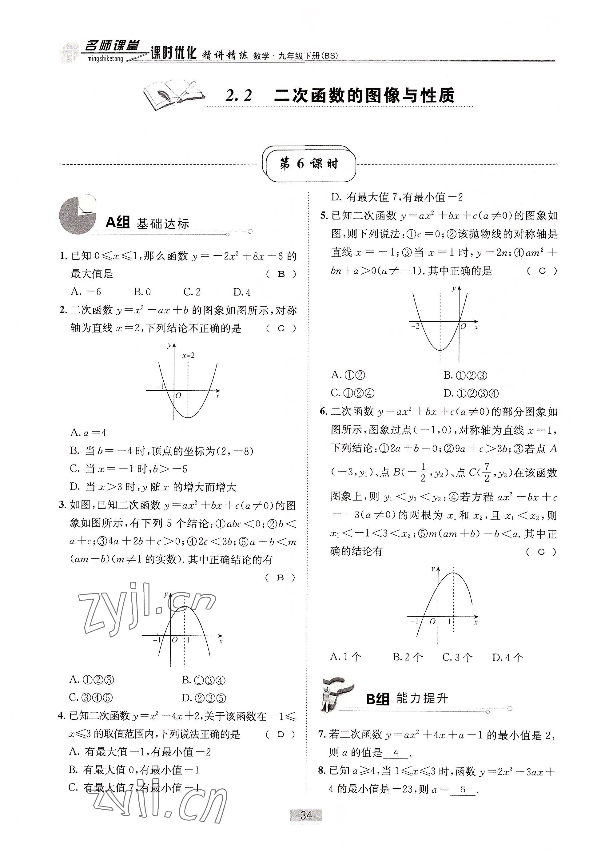 注:目前有些书本章节名称可能整理的还不是很完善,但都是按照顺序排列的,请同学们按照顺序仔细查找。练习册 2022年名师课堂课时优化精讲精练九年级数学下册北师大版 答案主要是用来给同学们做完题方便对答案用的,请勿直接抄袭。
