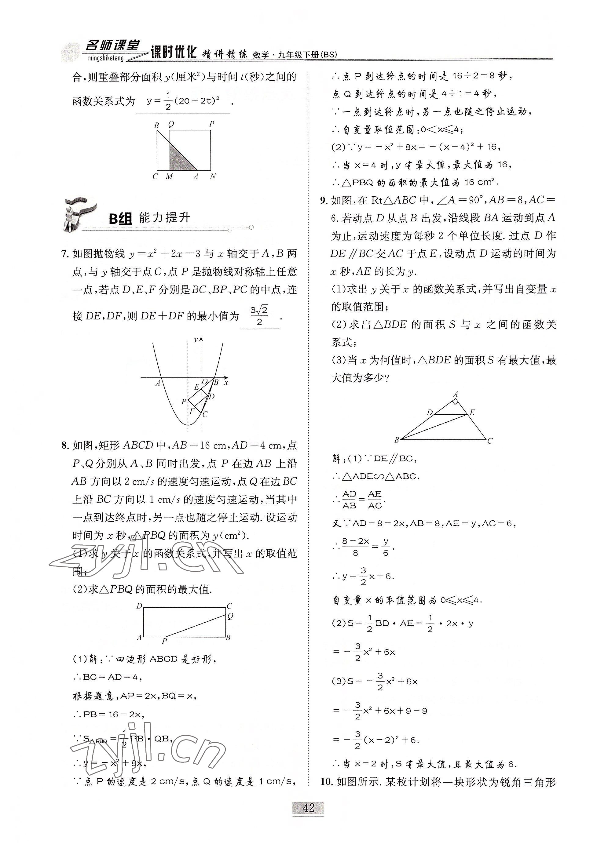 注:目前有些书本章节名称可能整理的还不是很完善,但都是按照顺序排列的,请同学们按照顺序仔细查找。练习册 2022年名师课堂课时优化精讲精练九年级数学下册北师大版 答案主要是用来给同学们做完题方便对答案用的,请勿直接抄袭。