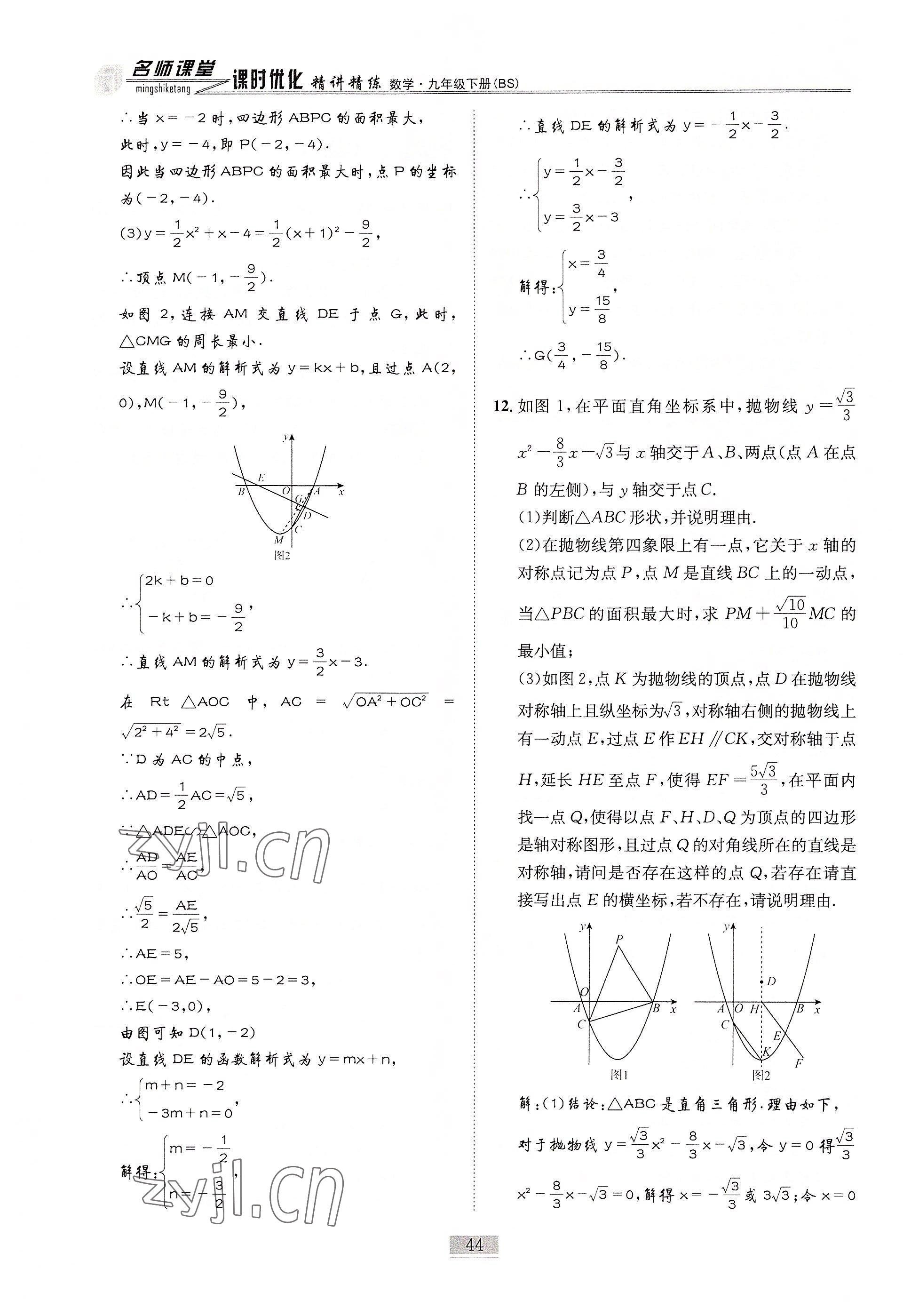 注:目前有些书本章节名称可能整理的还不是很完善,但都是按照顺序排列的,请同学们按照顺序仔细查找。练习册 2022年名师课堂课时优化精讲精练九年级数学下册北师大版 答案主要是用来给同学们做完题方便对答案用的,请勿直接抄袭。