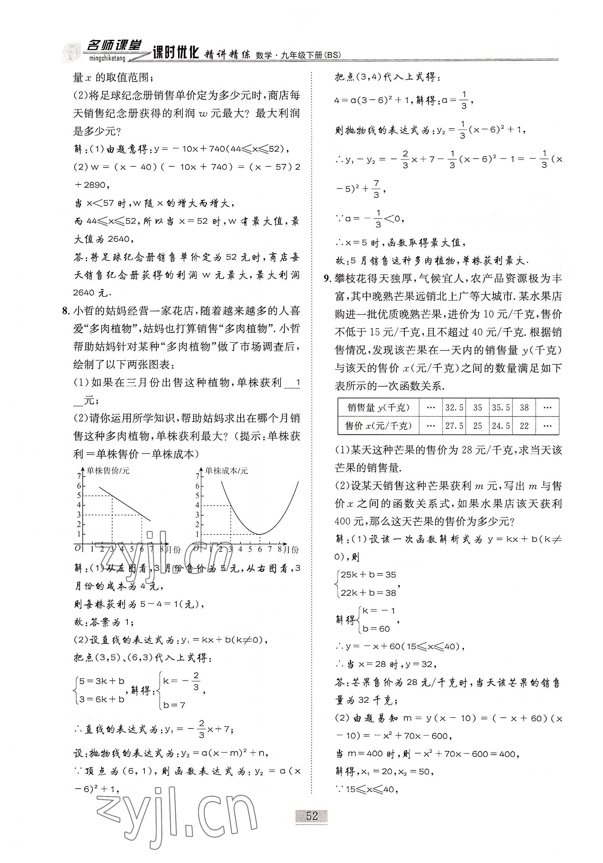 2022年名师课堂课时优化精讲精练九年级数学下册北师大版