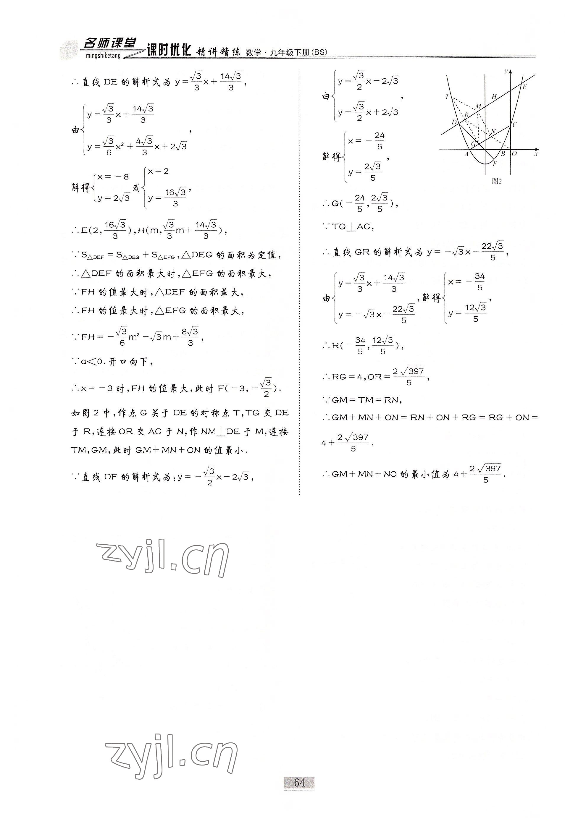 注:目前有些书本章节名称可能整理的还不是很完善,但都是按照顺序排列的,请同学们按照顺序仔细查找。练习册 2022年名师课堂课时优化精讲精练九年级数学下册北师大版 答案主要是用来给同学们做完题方便对答案用的,请勿直接抄袭。