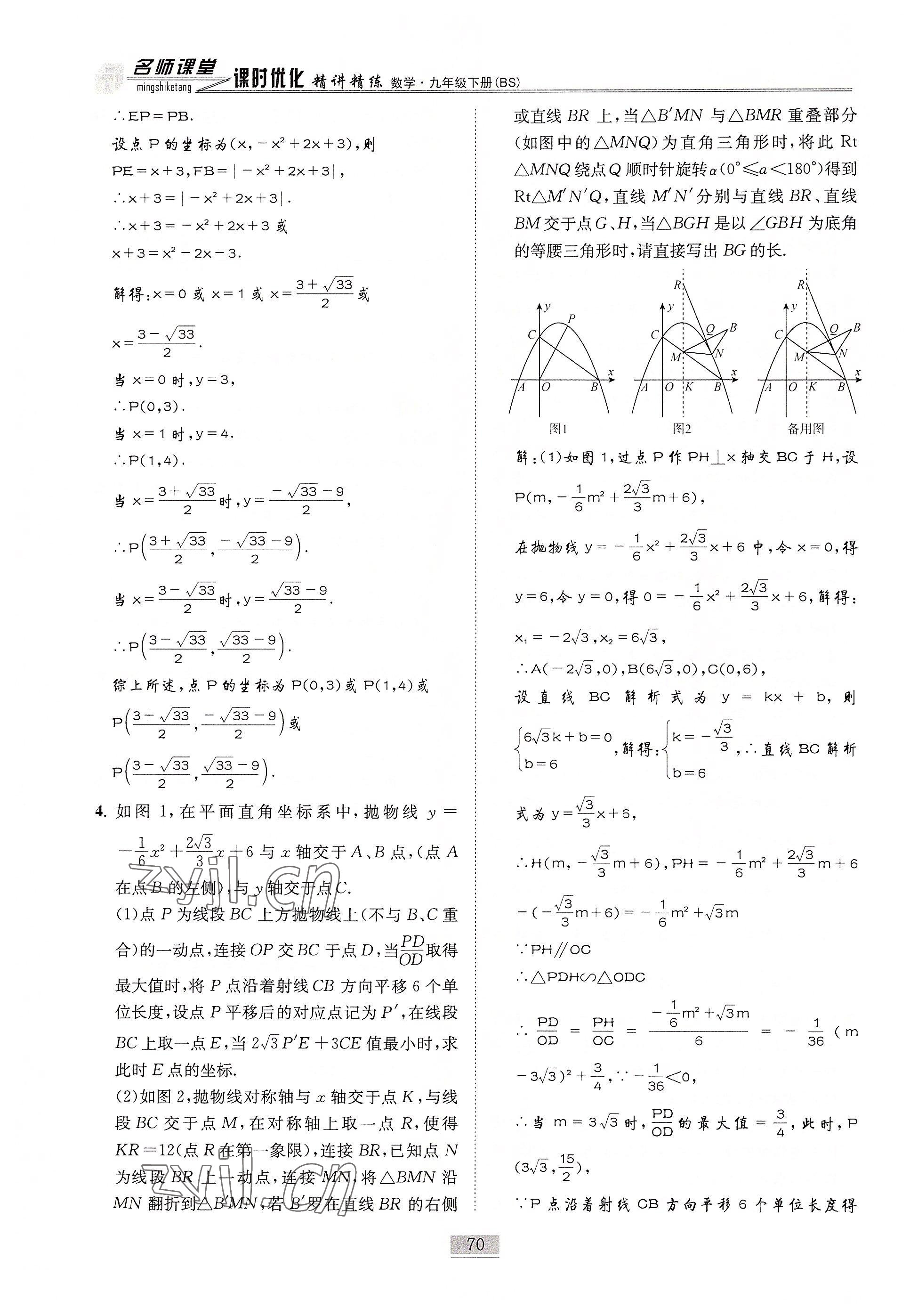 注:目前有些书本章节名称可能整理的还不是很完善,但都是按照顺序排列的,请同学们按照顺序仔细查找。练习册 2022年名师课堂课时优化精讲精练九年级数学下册北师大版 答案主要是用来给同学们做完题方便对答案用的,请勿直接抄袭。