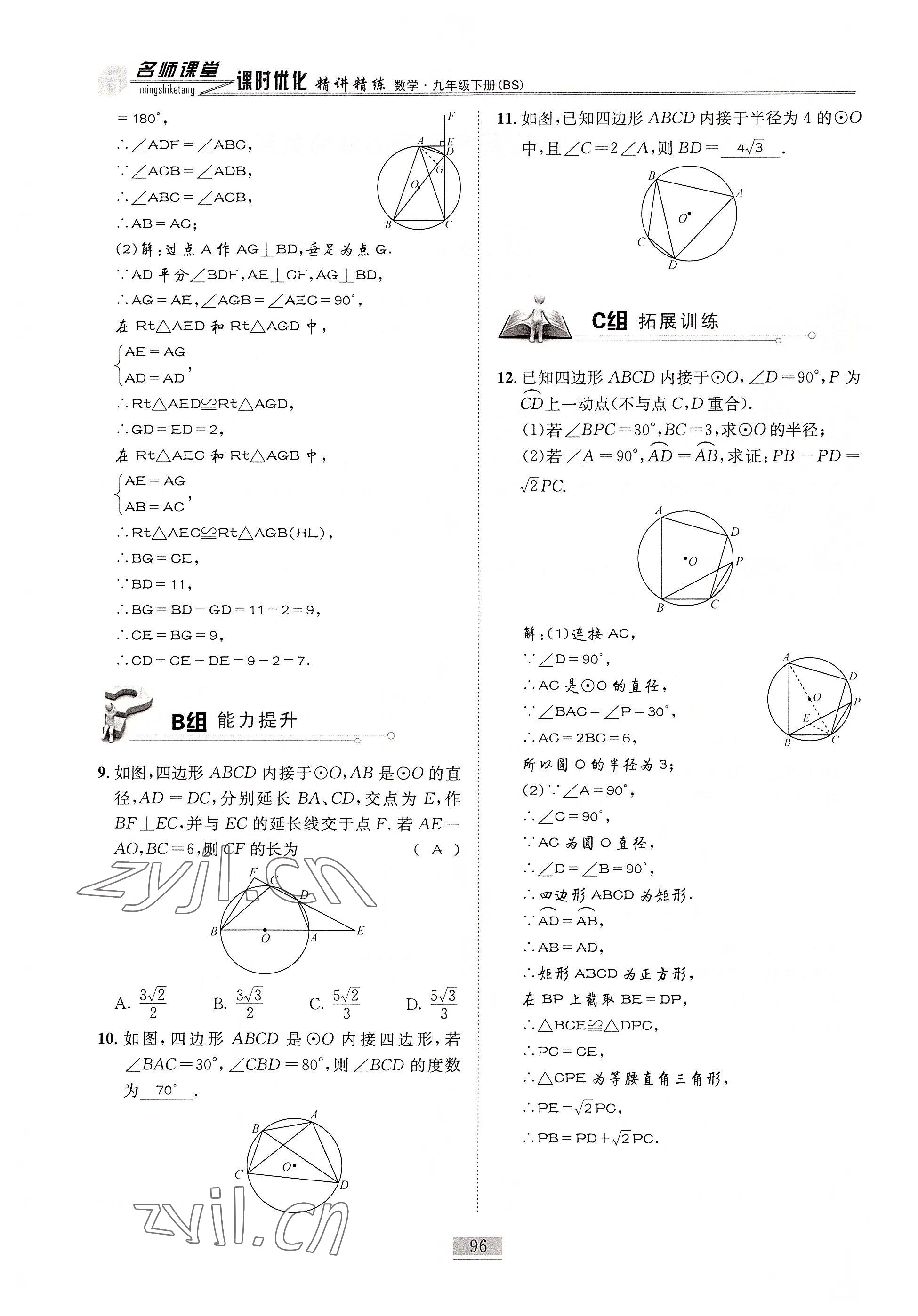 注:目前有些书本章节名称可能整理的还不是很完善,但都是按照顺序排列的,请同学们按照顺序仔细查找。练习册 2022年名师课堂课时优化精讲精练九年级数学下册北师大版 答案主要是用来给同学们做完题方便对答案用的,请勿直接抄袭。