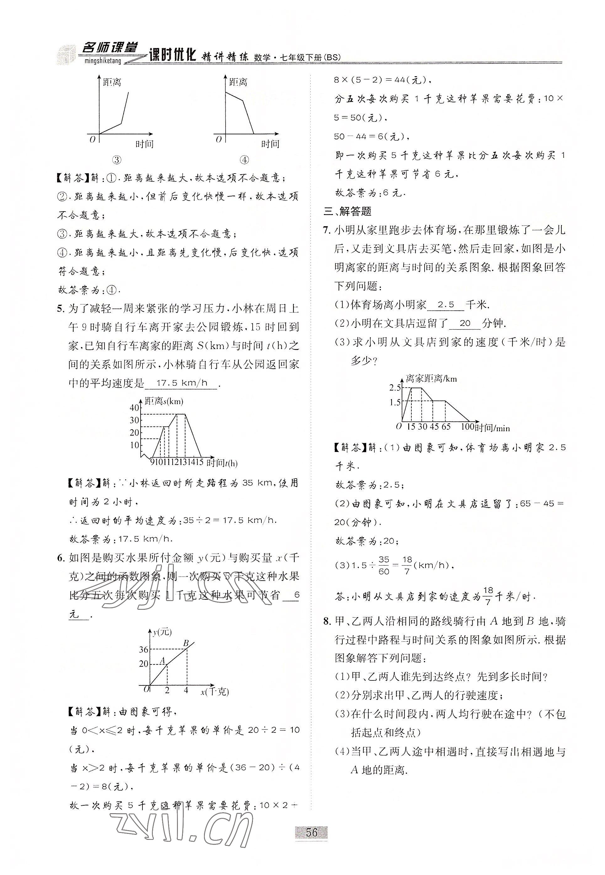 2022年名师课堂课时优化精讲精练七年级数学下册北师大版