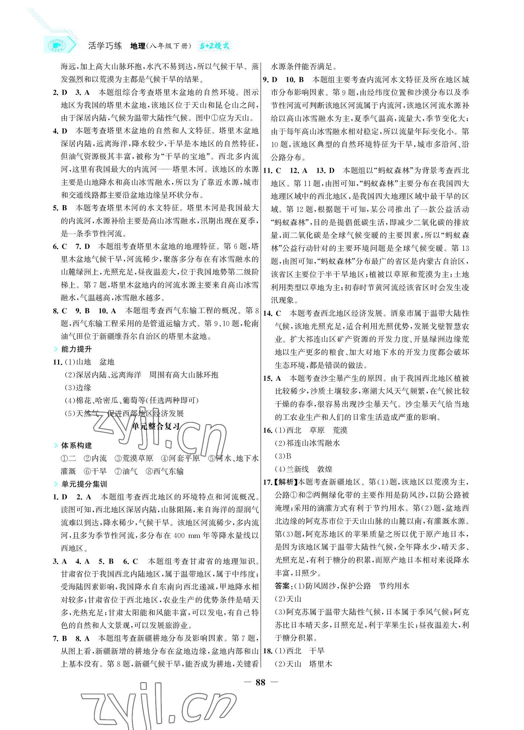 注:目前有些书本章节名称可能整理的还不是很完善,但都是按照顺序排列的,请同学们按照顺序仔细查找。练习册 2022年世纪金榜活学巧练八年级地理下册人教版 答案主要是用来给同学们做完题方便对答案用的,请勿直接抄袭。
