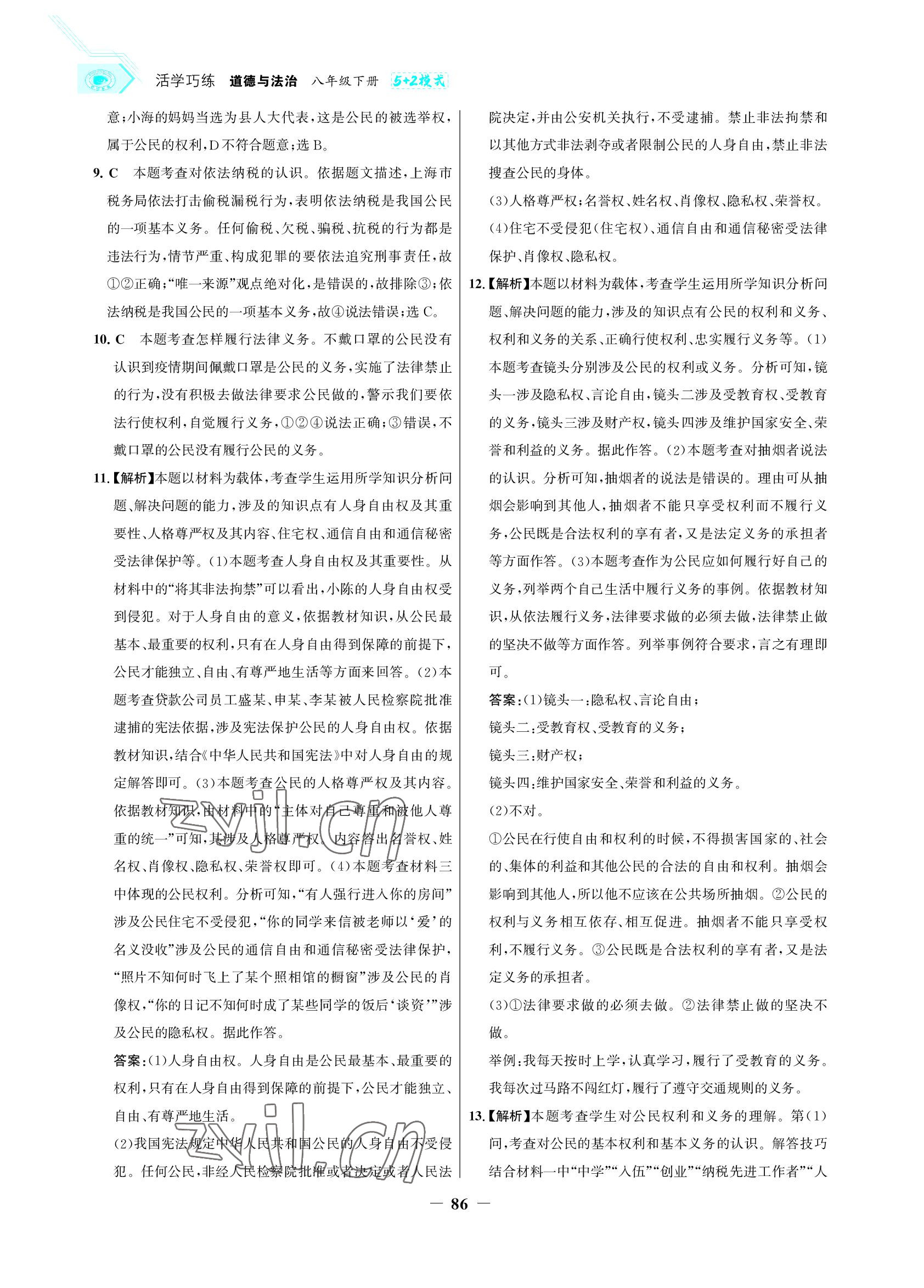 2022年世纪金榜活学巧练八年级道德与法治下册人教版