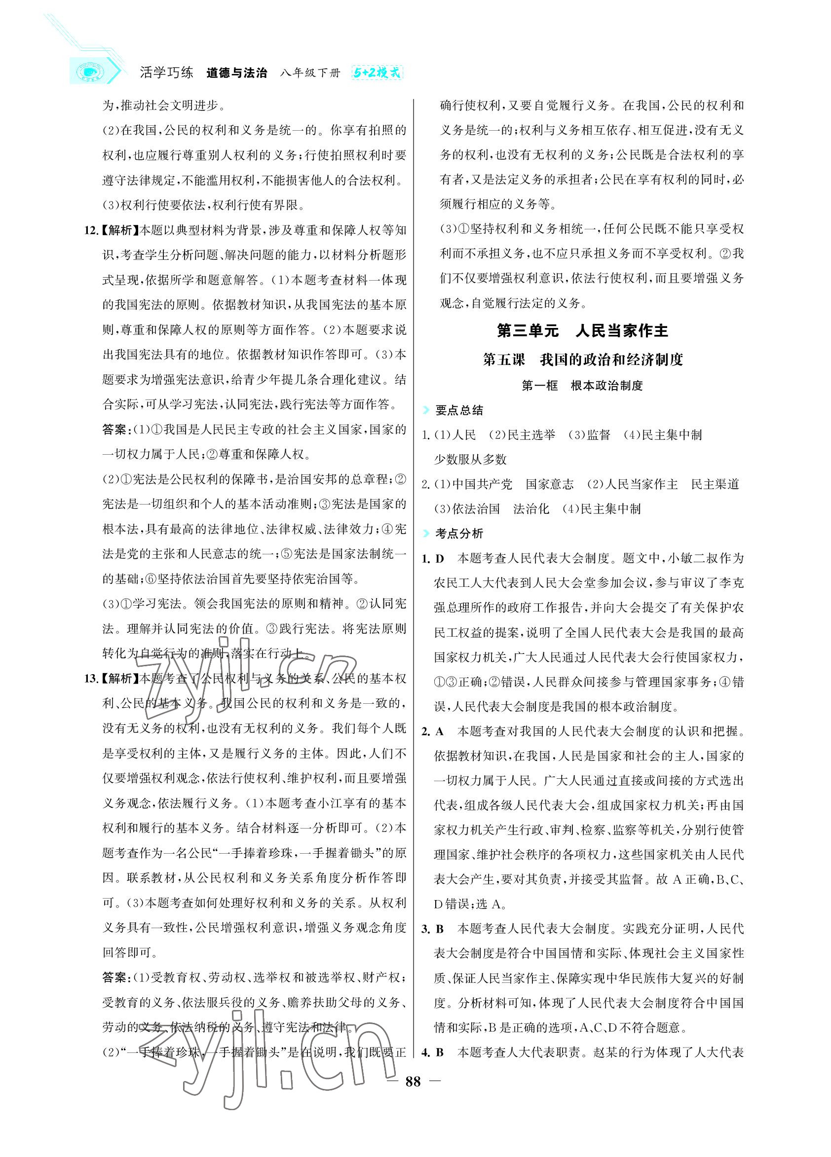 2022年世纪金榜活学巧练八年级道德与法治下册人教版