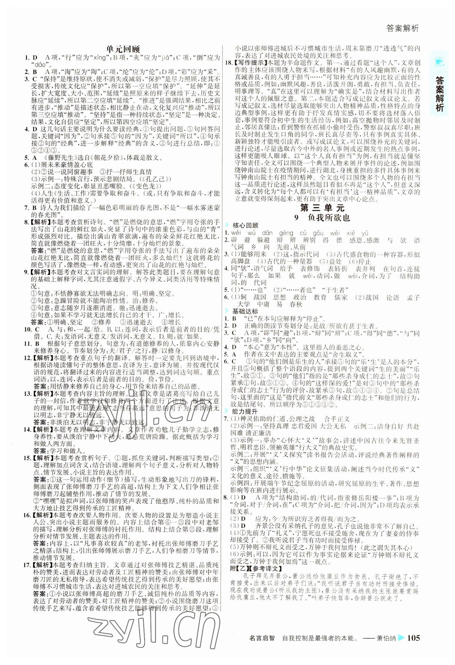 注:目前有些书本章节名称可能整理的还不是很完善,但都是按照顺序排列的,请同学们按照顺序仔细查找。练习册 2022年世纪金榜活学巧练九年级语文下册人教版 答案主要是用来给同学们做完题方便对答案用的,请勿直接抄袭。