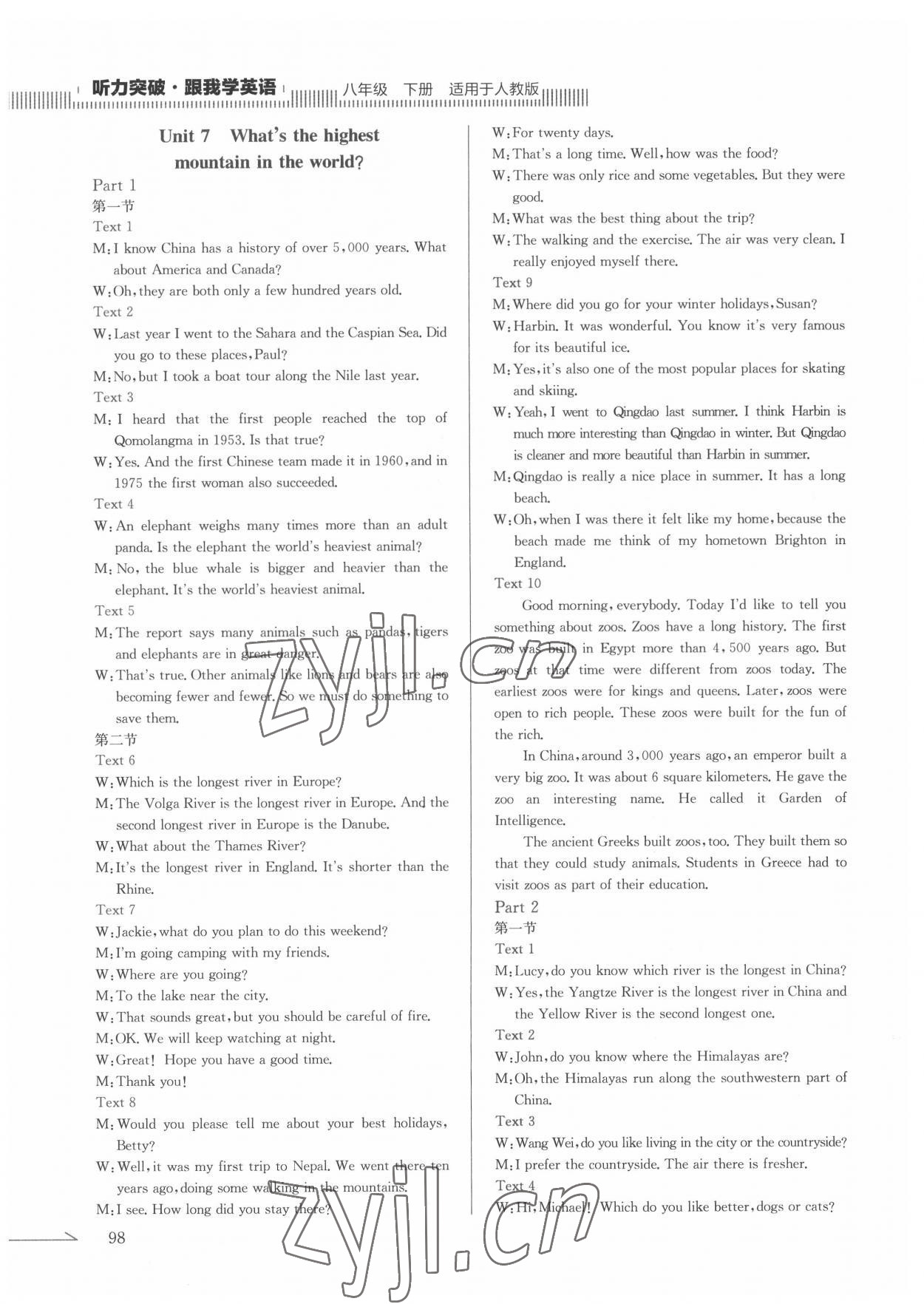 2022年跟我学英语八年级下册人教版