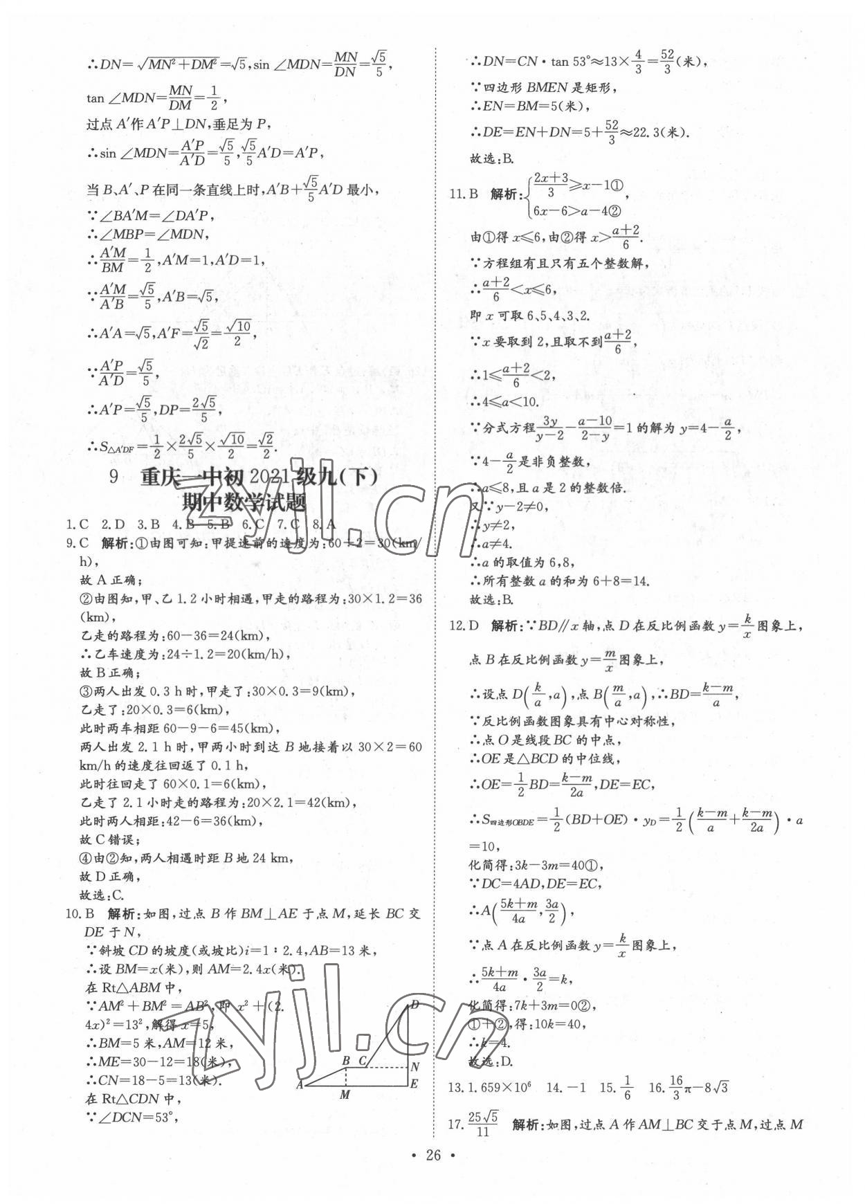 注:目前有些书本章节名称可能整理的还不是很完善,但都是按照顺序排列的,请同学们按照顺序仔细查找。练习册 2022年锋芒文化重庆市名校中考金卷数学 答案主要是用来给同学们做完题方便对答案用的,请勿直接抄袭。