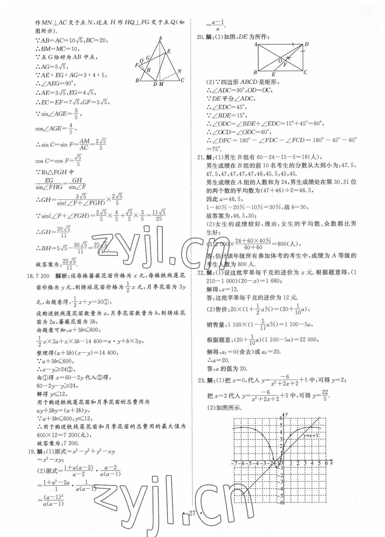 注:目前有些书本章节名称可能整理的还不是很完善,但都是按照顺序排列的,请同学们按照顺序仔细查找。练习册 2022年锋芒文化重庆市名校中考金卷数学 答案主要是用来给同学们做完题方便对答案用的,请勿直接抄袭。