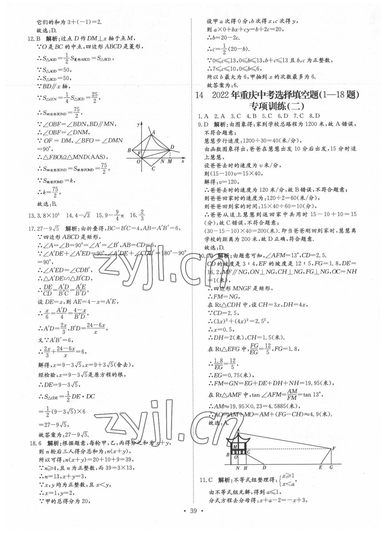 注:目前有些书本章节名称可能整理的还不是很完善,但都是按照顺序排列的,请同学们按照顺序仔细查找。练习册 2022年锋芒文化重庆市名校中考金卷数学 答案主要是用来给同学们做完题方便对答案用的,请勿直接抄袭。