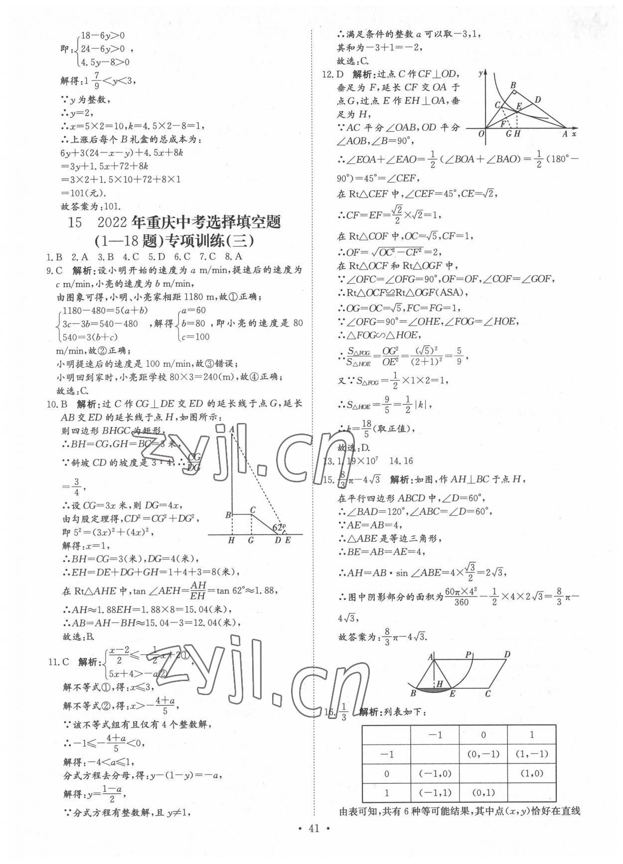 注:目前有些书本章节名称可能整理的还不是很完善,但都是按照顺序排列的,请同学们按照顺序仔细查找。练习册 2022年锋芒文化重庆市名校中考金卷数学 答案主要是用来给同学们做完题方便对答案用的,请勿直接抄袭。